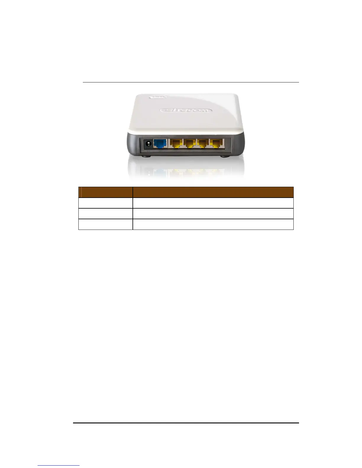 WAN (Blue) Connect your ADSL/Cable modem to this port
