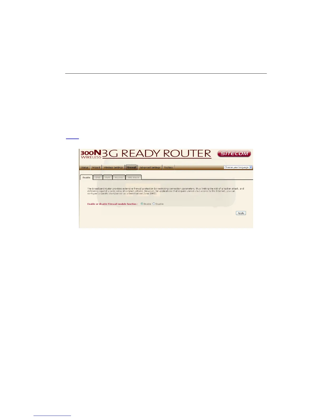 Note: To enable the Firewall settings select Enable and click Apply.