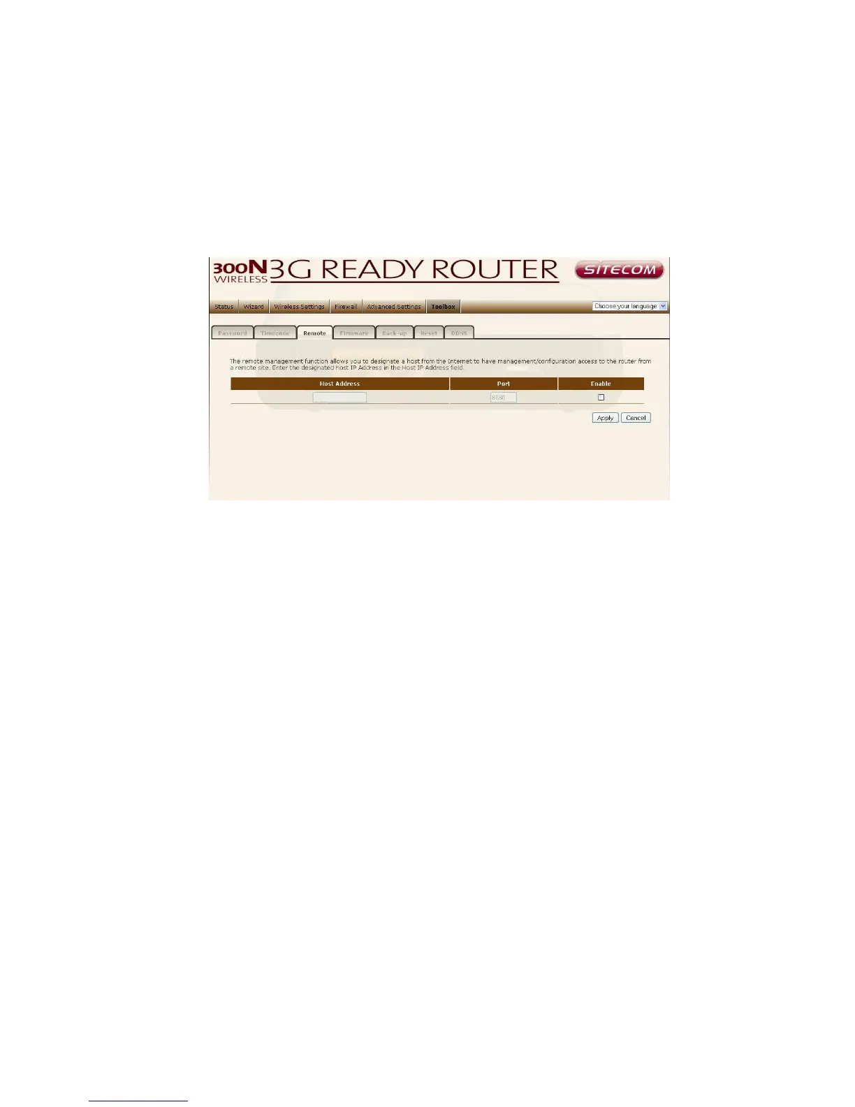 The remote management function allows you to designate a host in the Internet