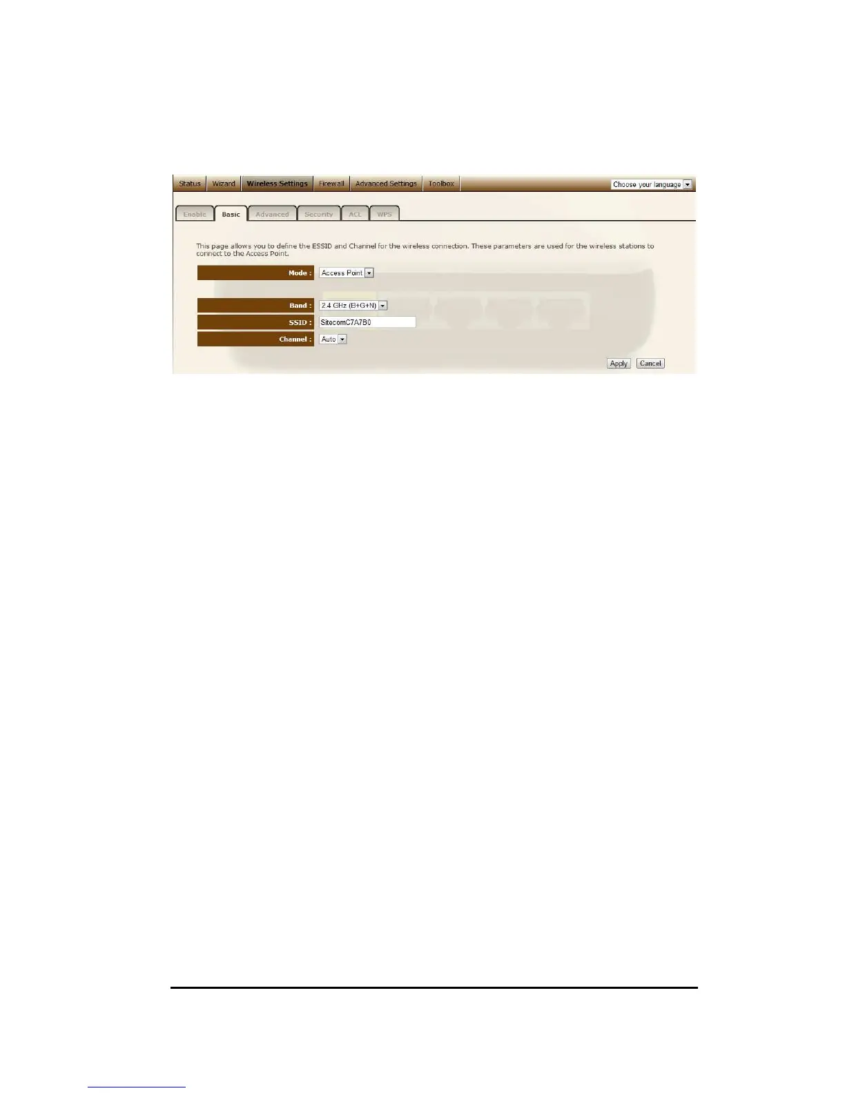 Band Allows you to set the AP fixed at 802.11b or 802.11g mode. You can
