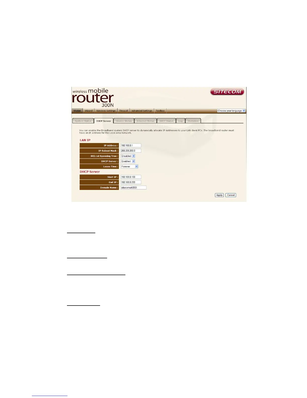 DHCP Server Enabled by default. You can enable or disable the DHCP server.