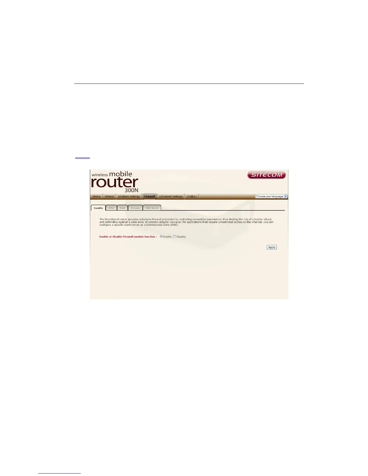 Note: To enable the Firewall settings select Enable and click Apply.