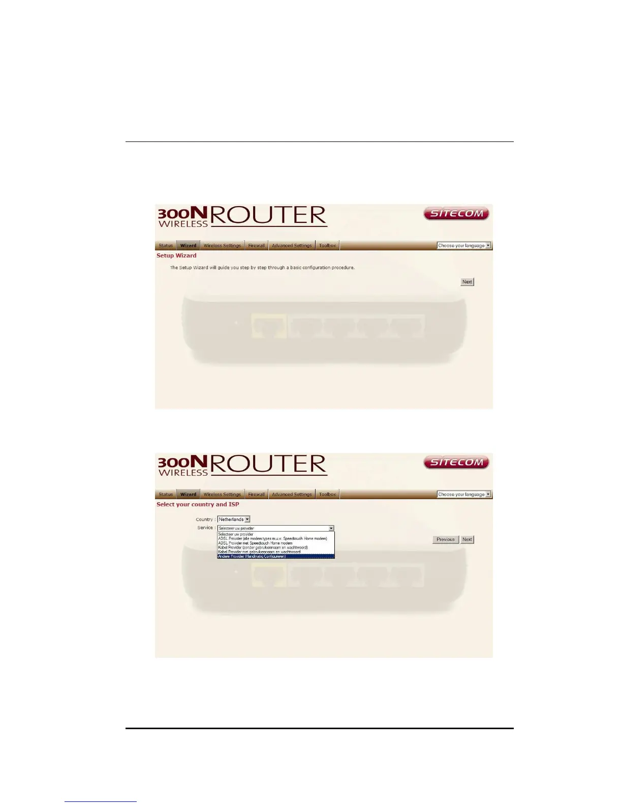 Click Wizard to configure the router. The Setup wizard will now be displayed;