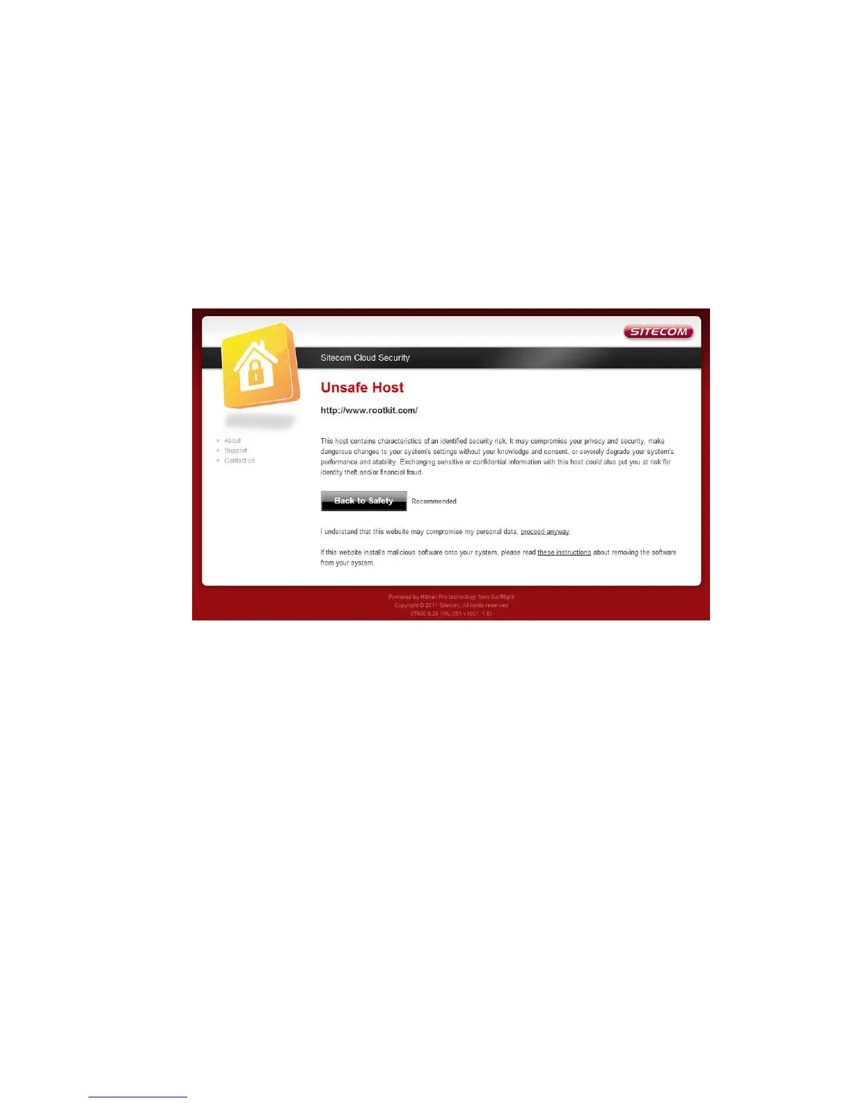 With the protection of unsafe websites activated the Sitecom Cloud Security