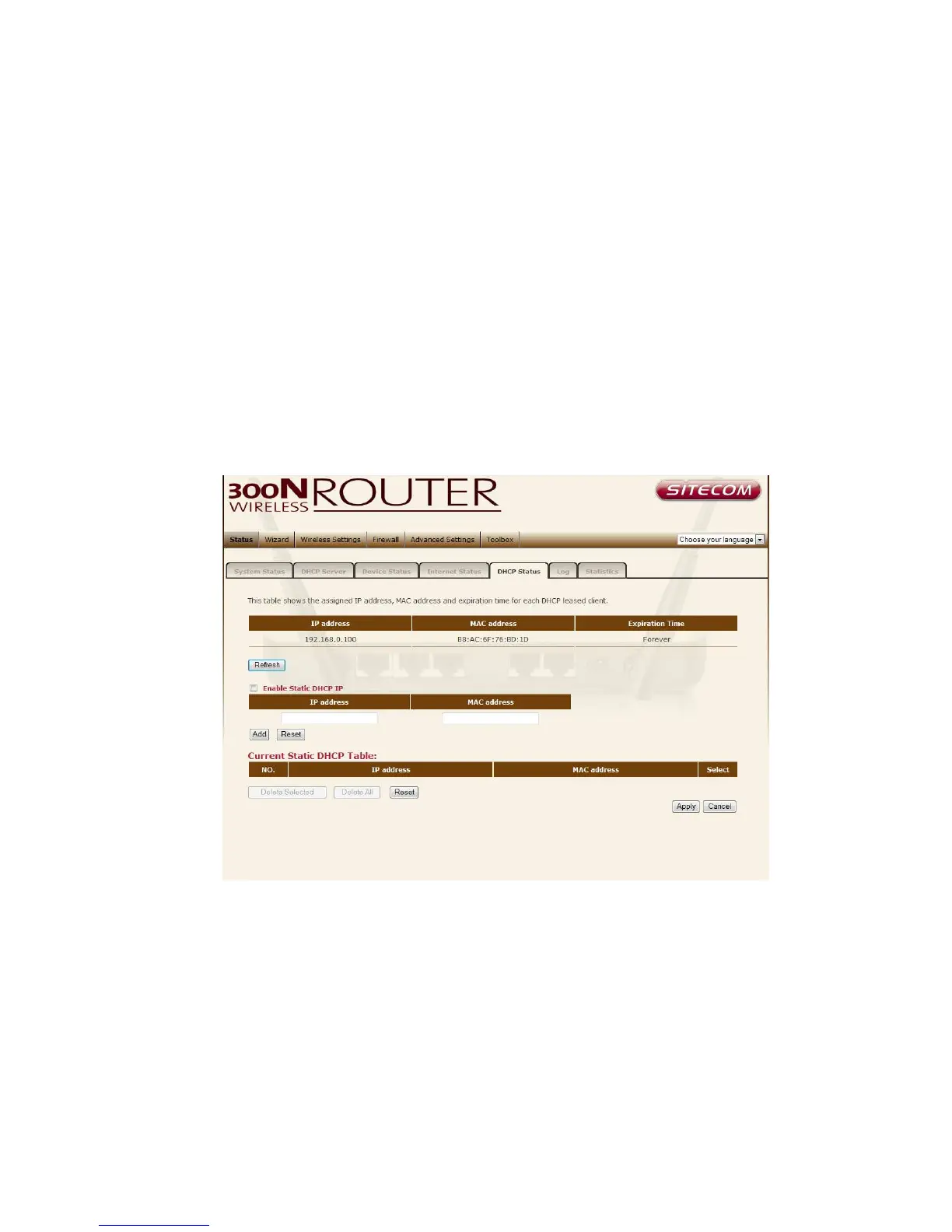 IPs. They are listed in the table Current Static DHCP Table. IP can be deleted