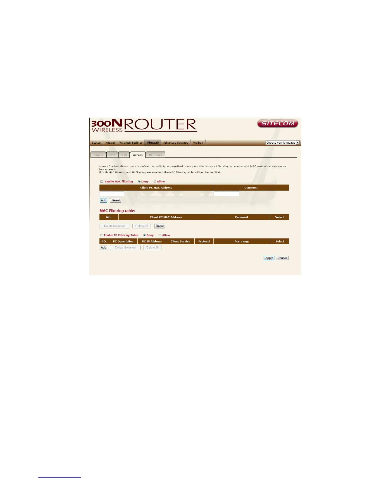 Deny If you select “Deny” then all clients will be allowed to access Internet