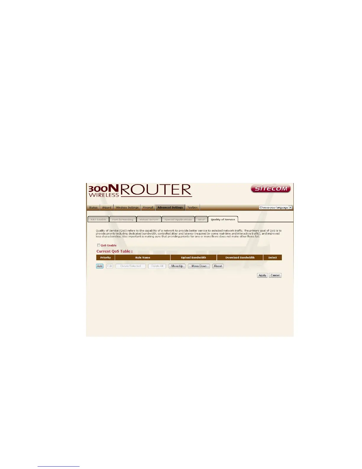 Add a QoS rule into the table Click “Add” then enter a form of the QoS