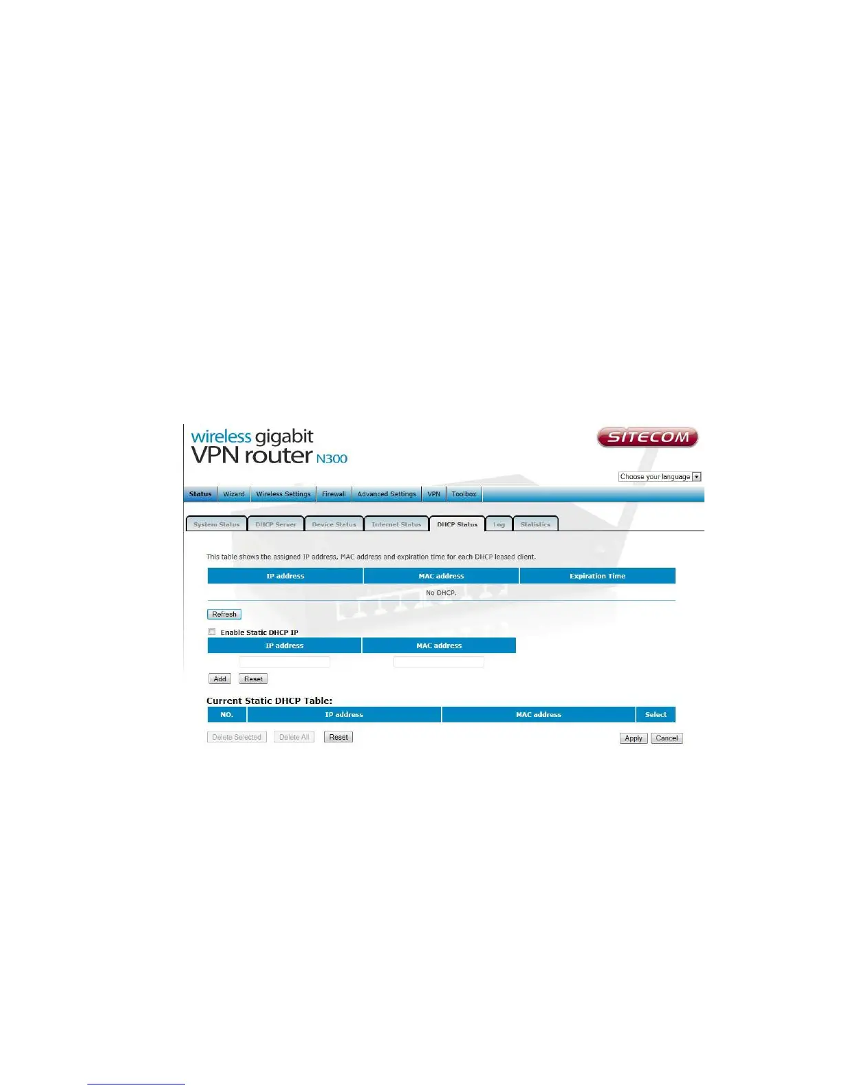IPs. They are listed in the table Current Static DHCP Table. IP can be deleted