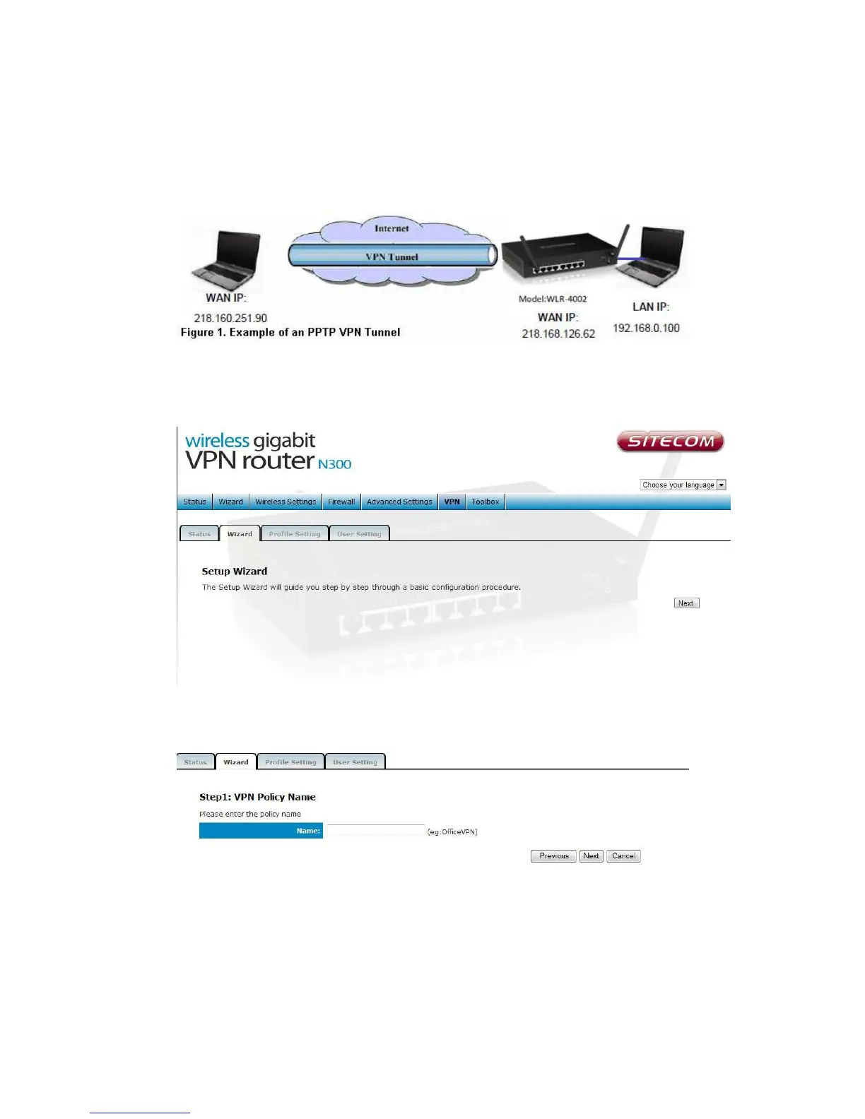 4. In the Name field, enter a name for the PPTP VPN tunnel. This name is for
