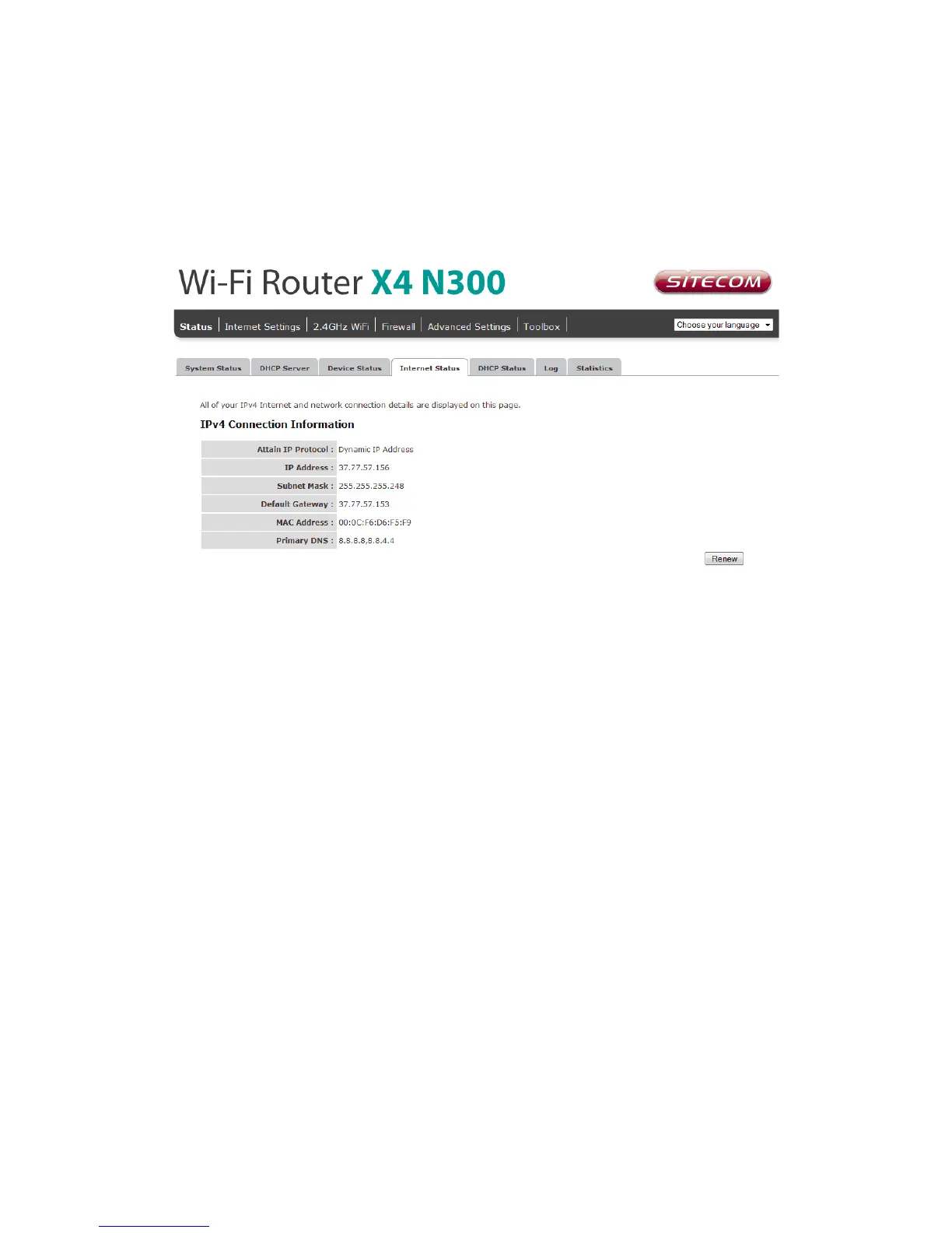 address, the Primary DNS. Press Renew button to renew your WAN IP address.