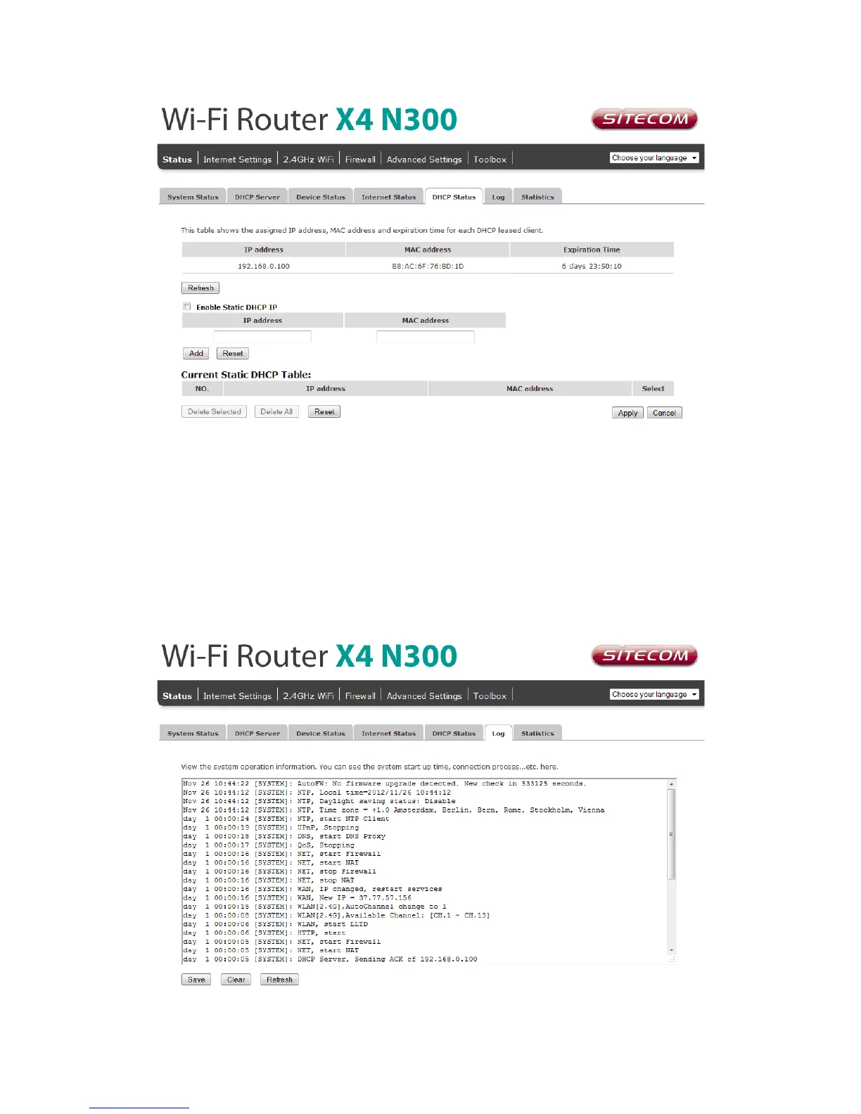 the system log can be cleared <Clear> or it can be refreshed <Refresh> to get the most