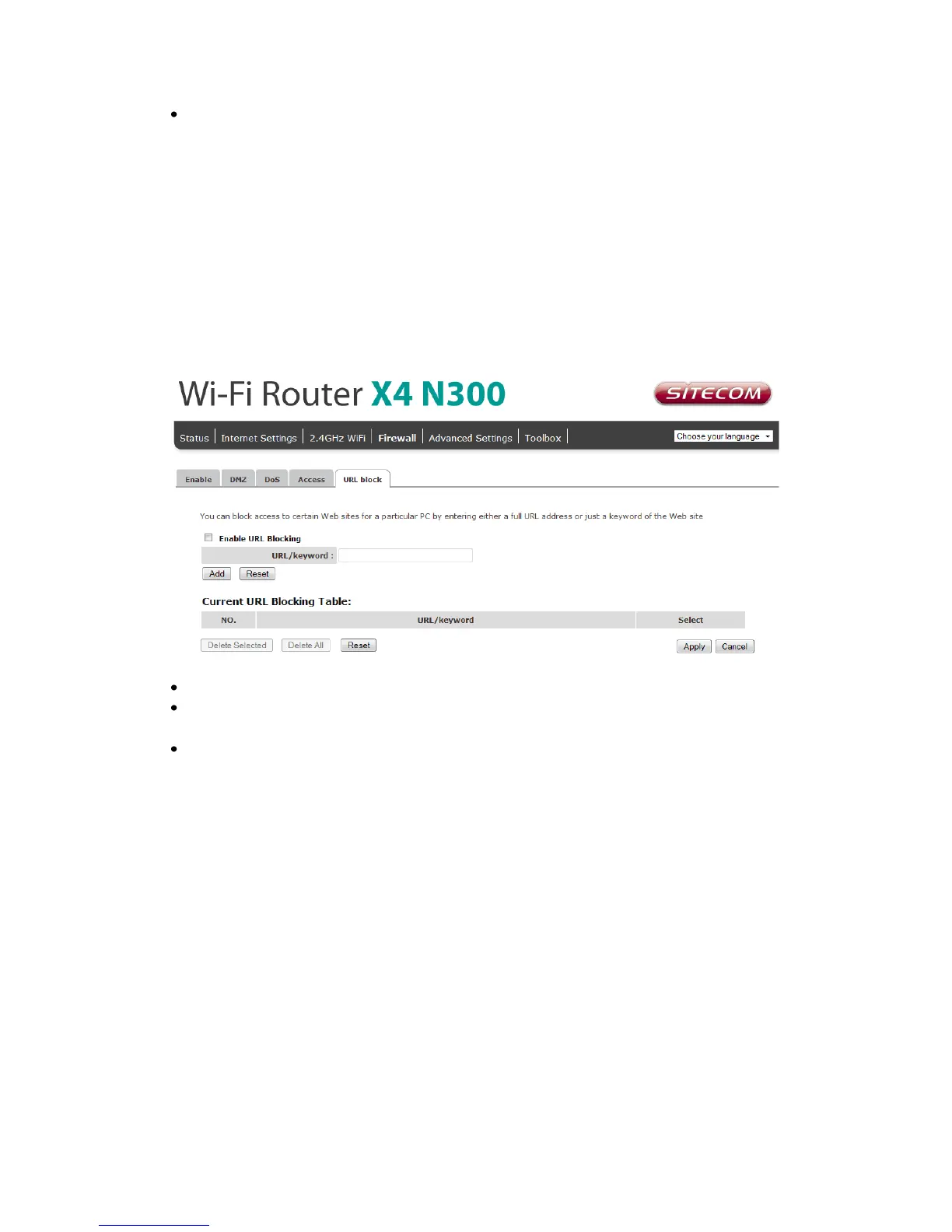 "Current URL Blocking Table", select the URL keyword you want to remove in the