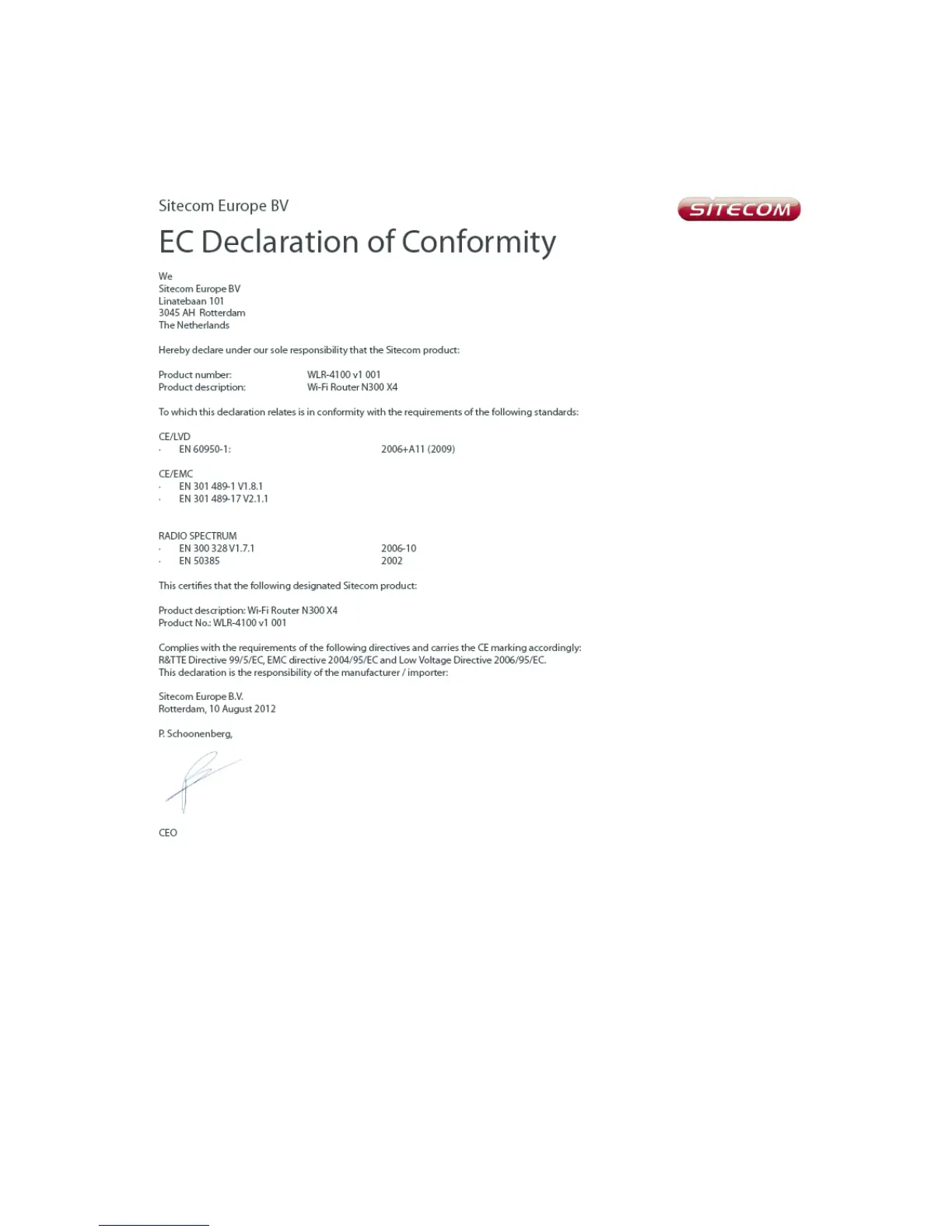 Sitecom WLR-4100 - Addendum C: Declaration of Conformity