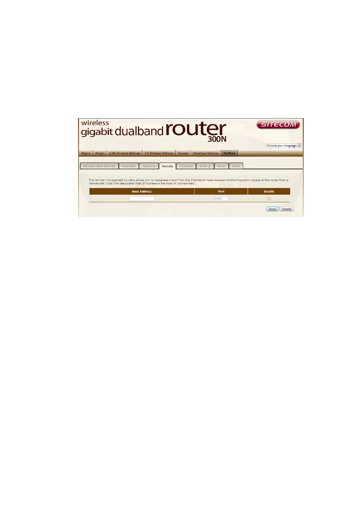 Enabled Select Enabled” to enable the remote management function.