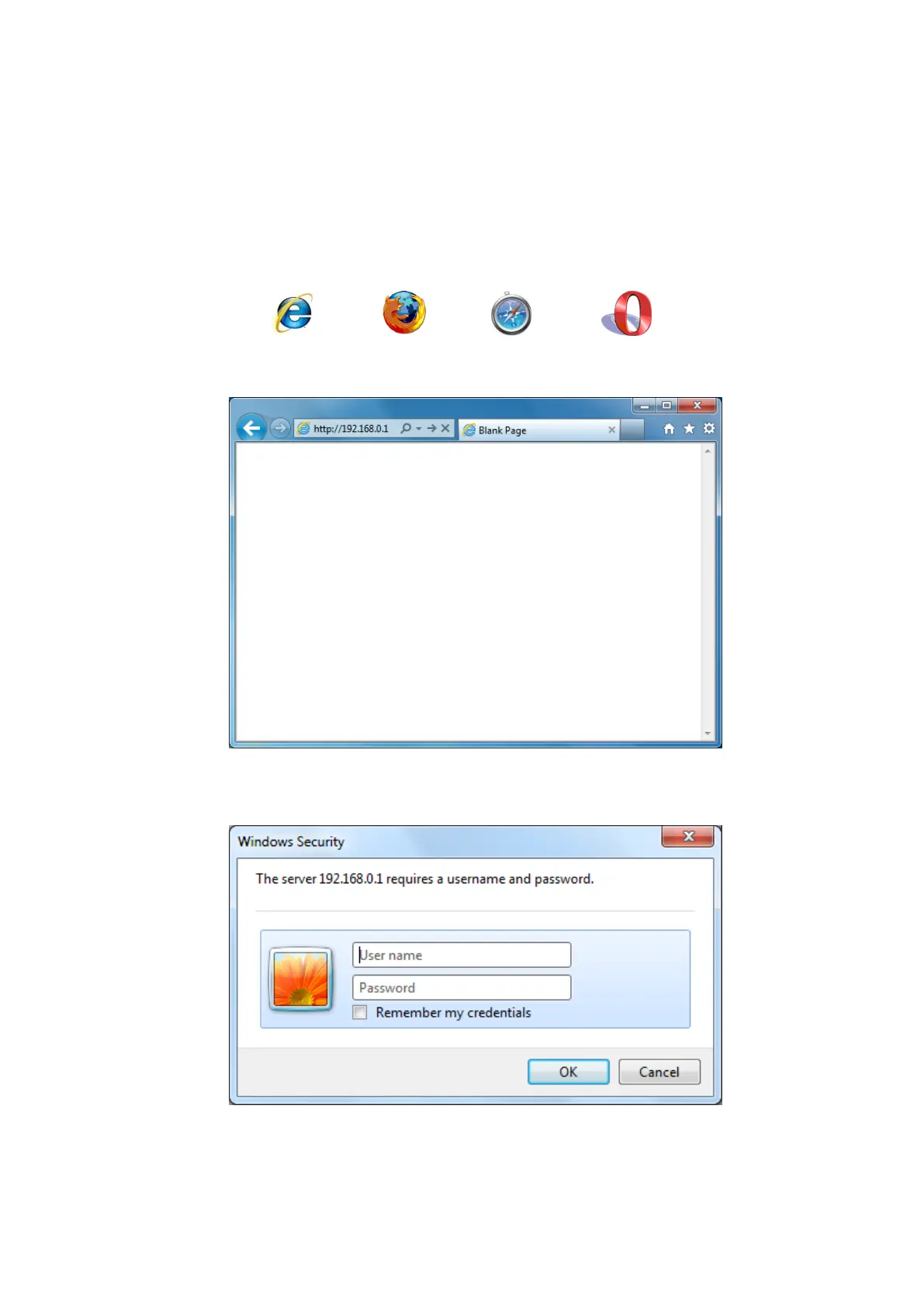 • Type user name and password. The default username is admin, the password