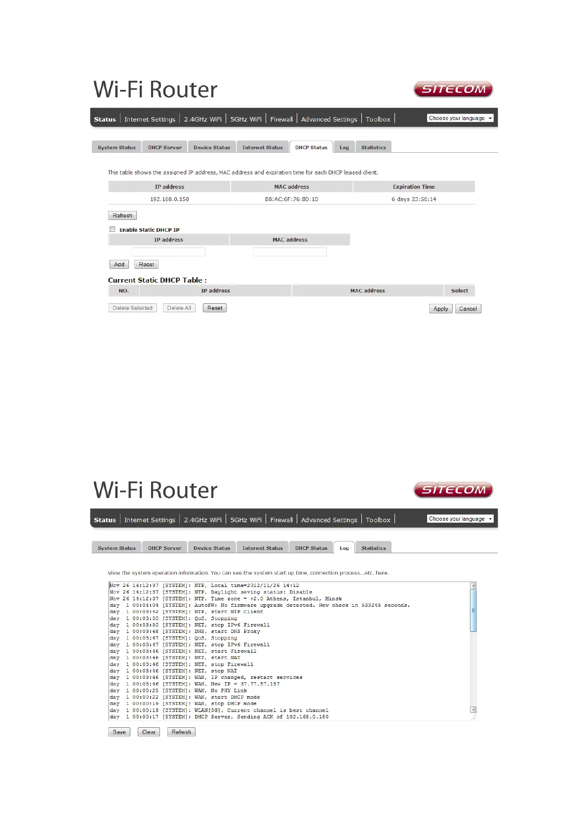 the system log can be cleared <Clear> or it can be refreshed <Refresh> to get the most