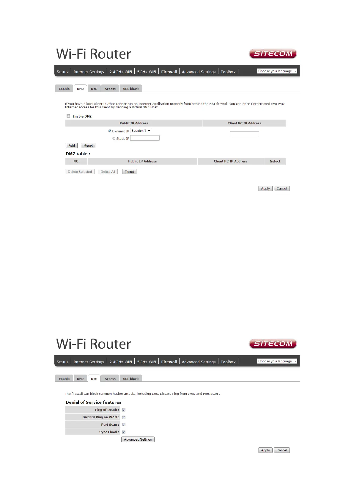 Service, Ping of Death, Port Scan and Sync Flood. If Internet attacks occur the router can