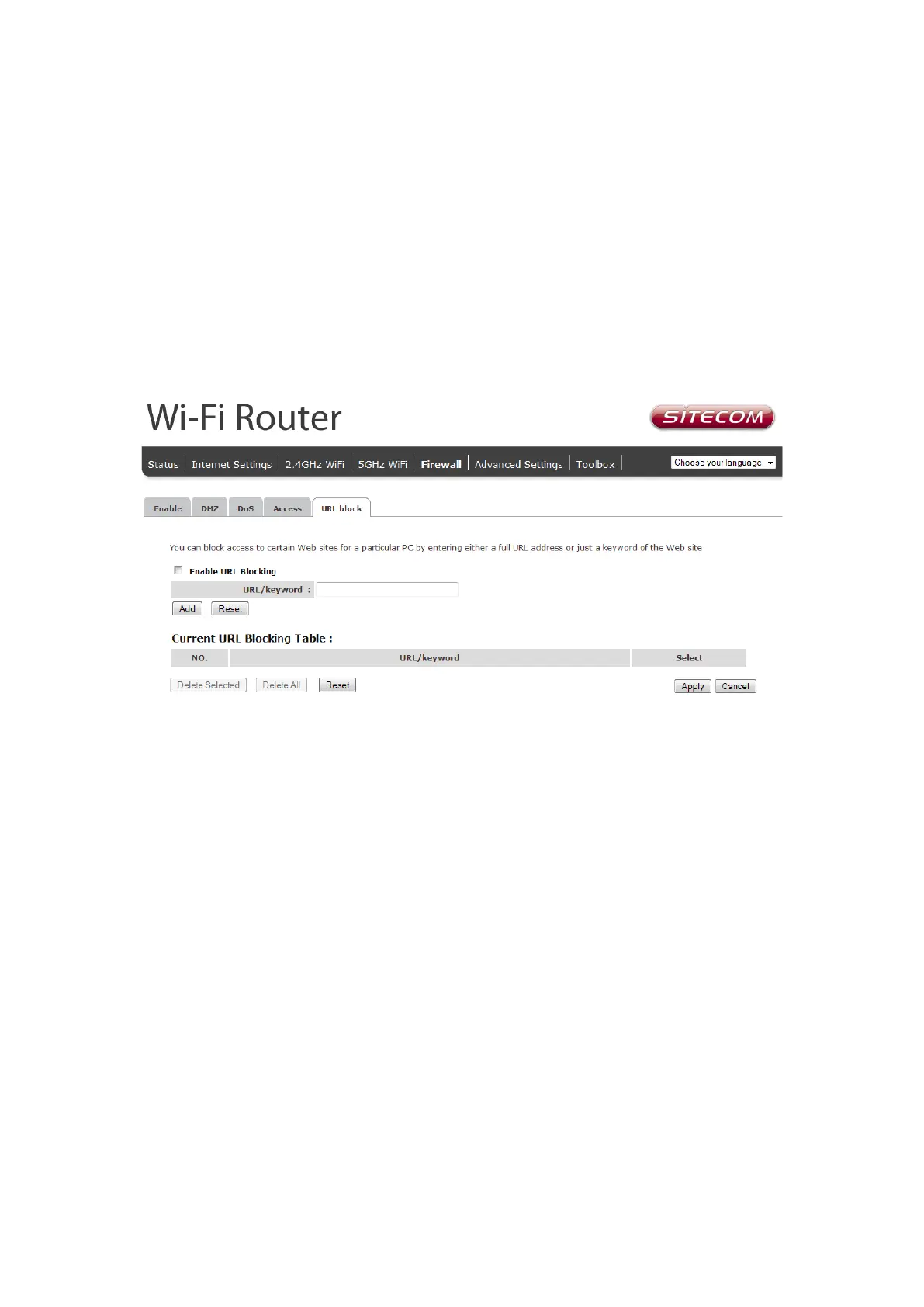 "Current URL Blocking Table", select the URL keyword you want to remove in the