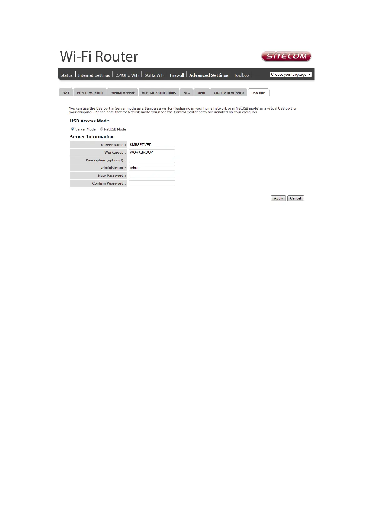 For netUSB make sure the radio button next to netUSB is selected and press Apply.