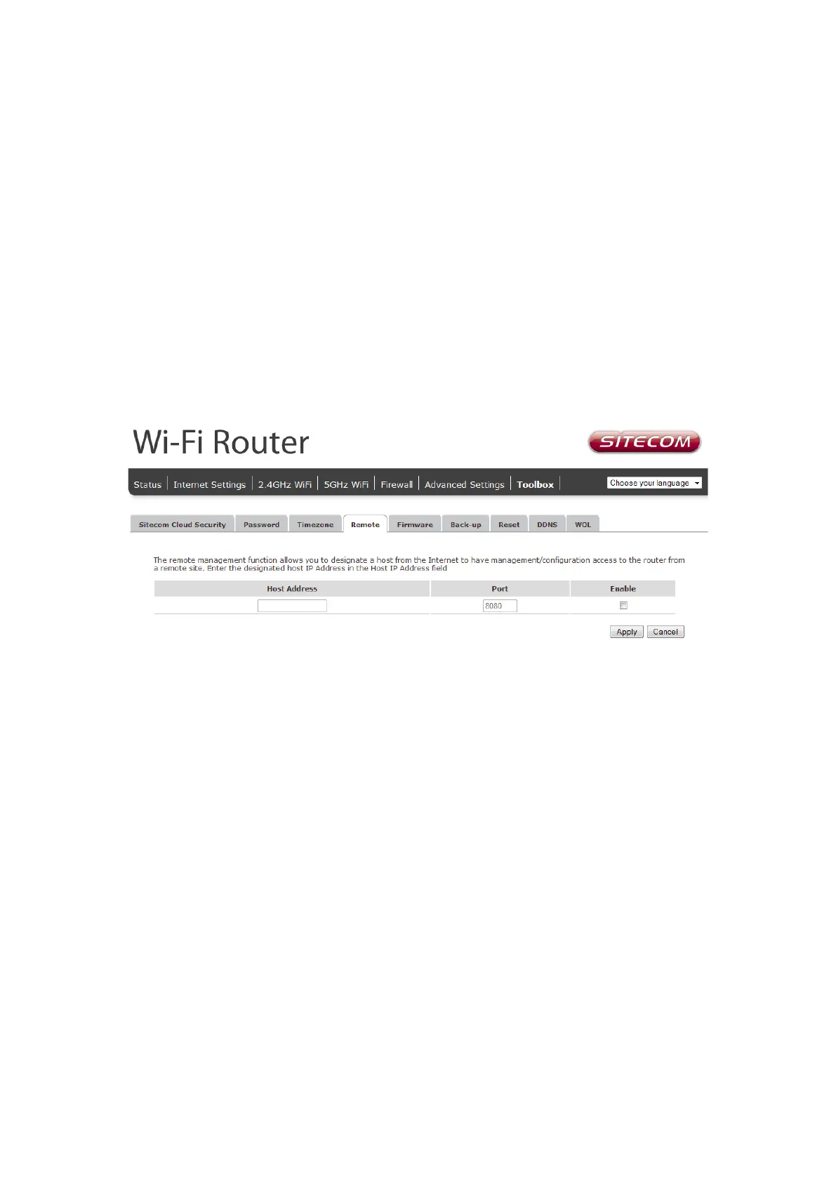 ability to configure the Broadband router from a remote site. Enter the designated host