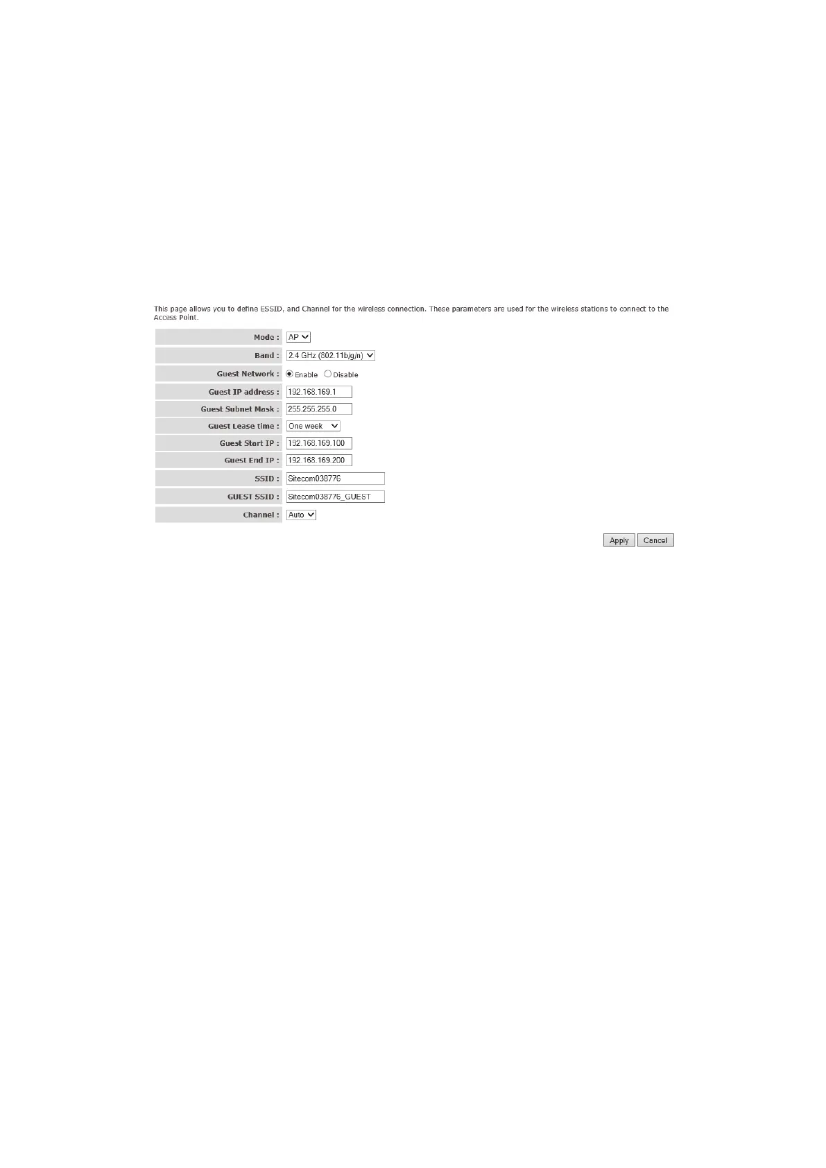 • Guest SSID: This is the name of the wireless signal which is broadcasted as