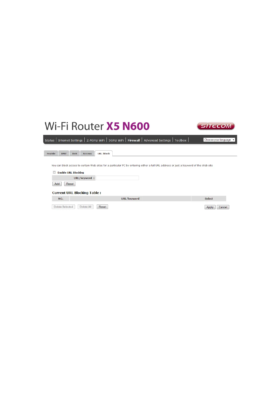 "Current URL Blocking Table", select the URL keyword you want to remove in the