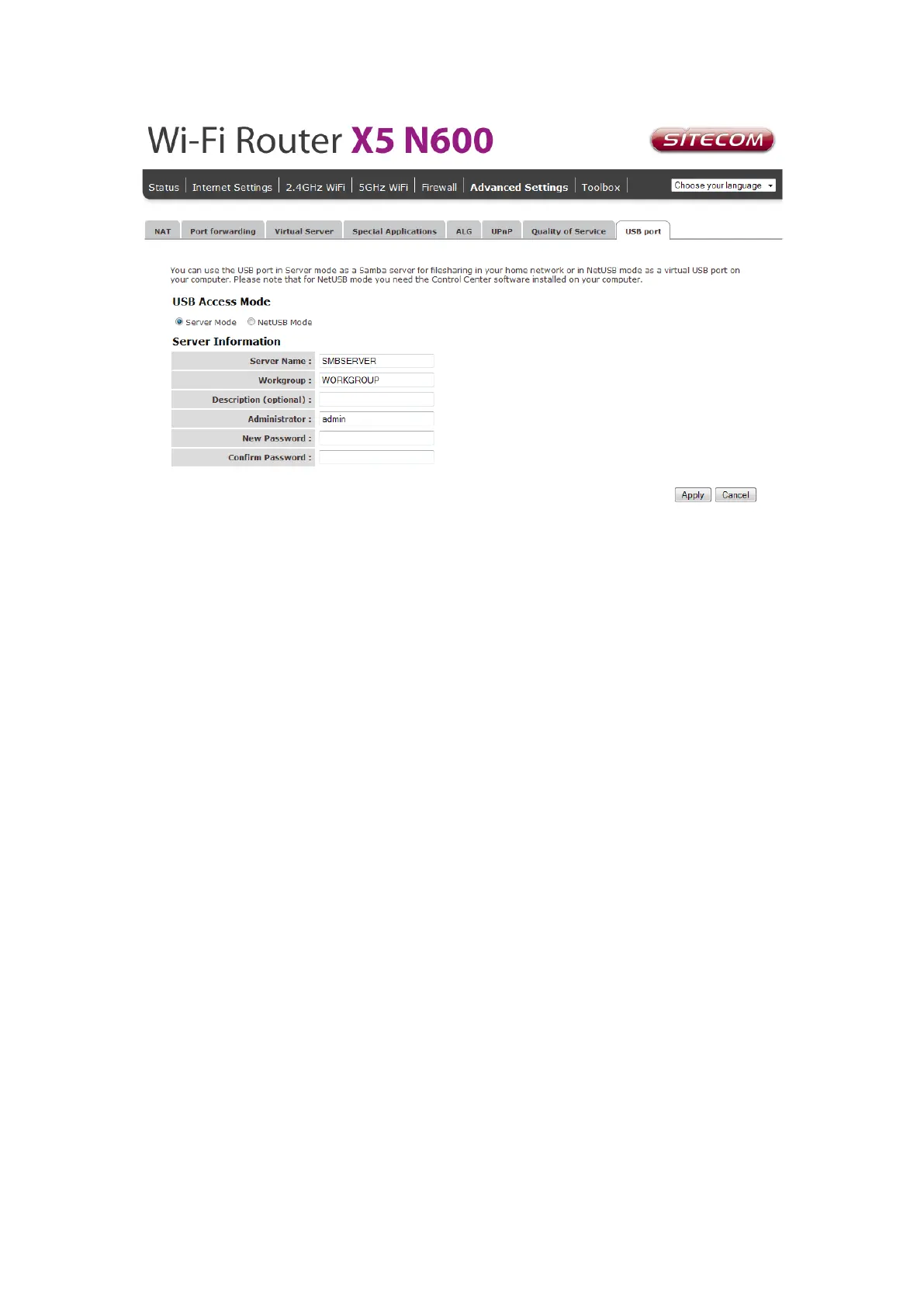 For netUSB make sure the radio button next to netUSB is selected and press Apply.
