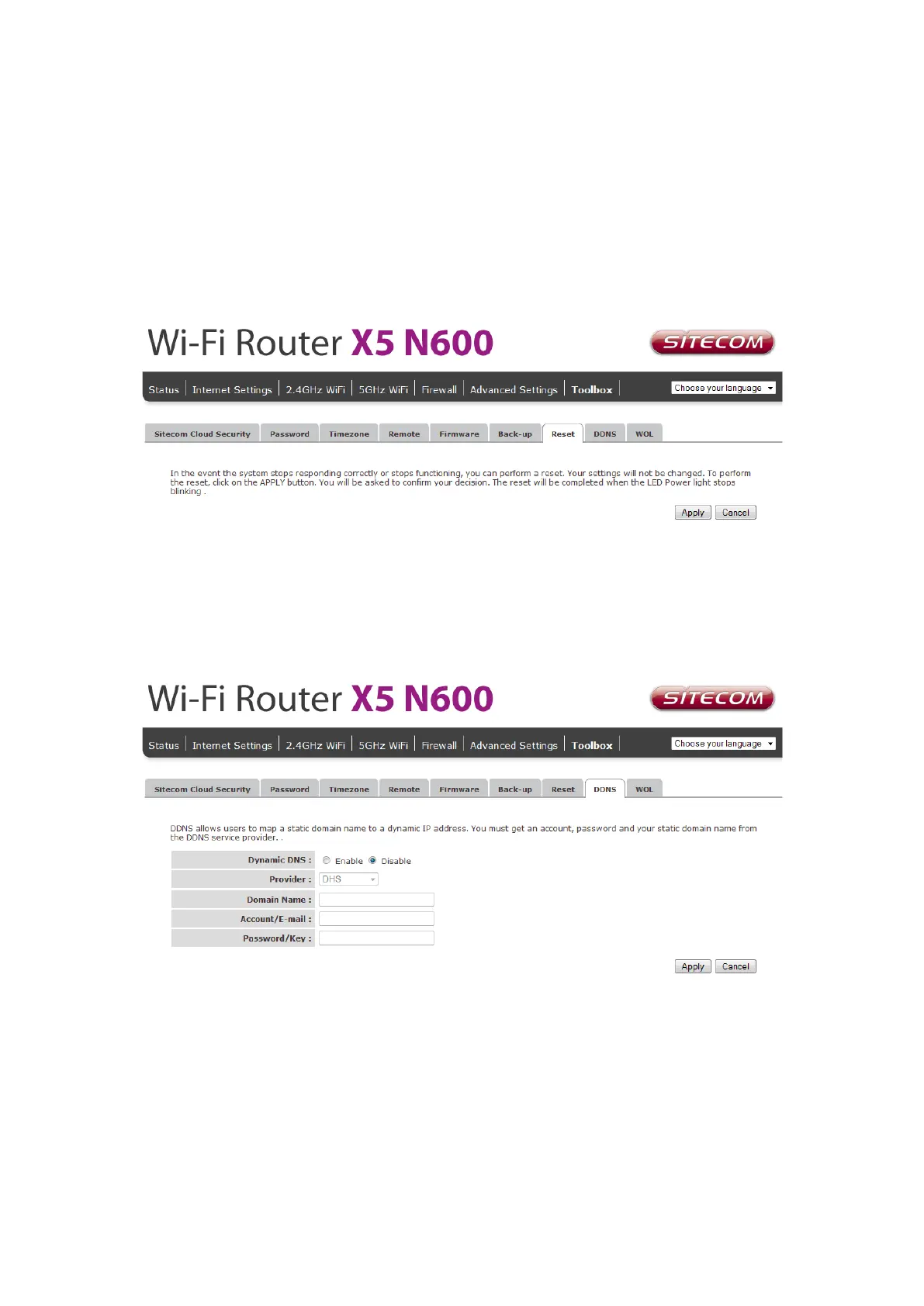 Enable/Disable: Enable or disable the DDNS function of this router