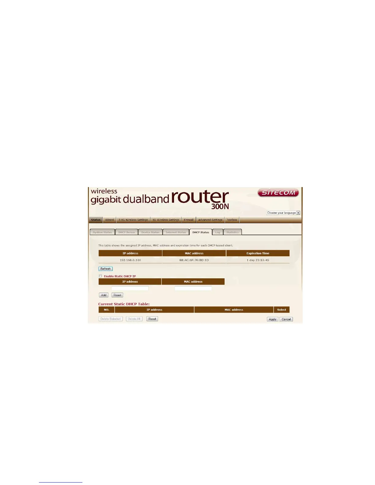 IPs. They are listed in the table Current Static DHCP Table. IP can be deleted