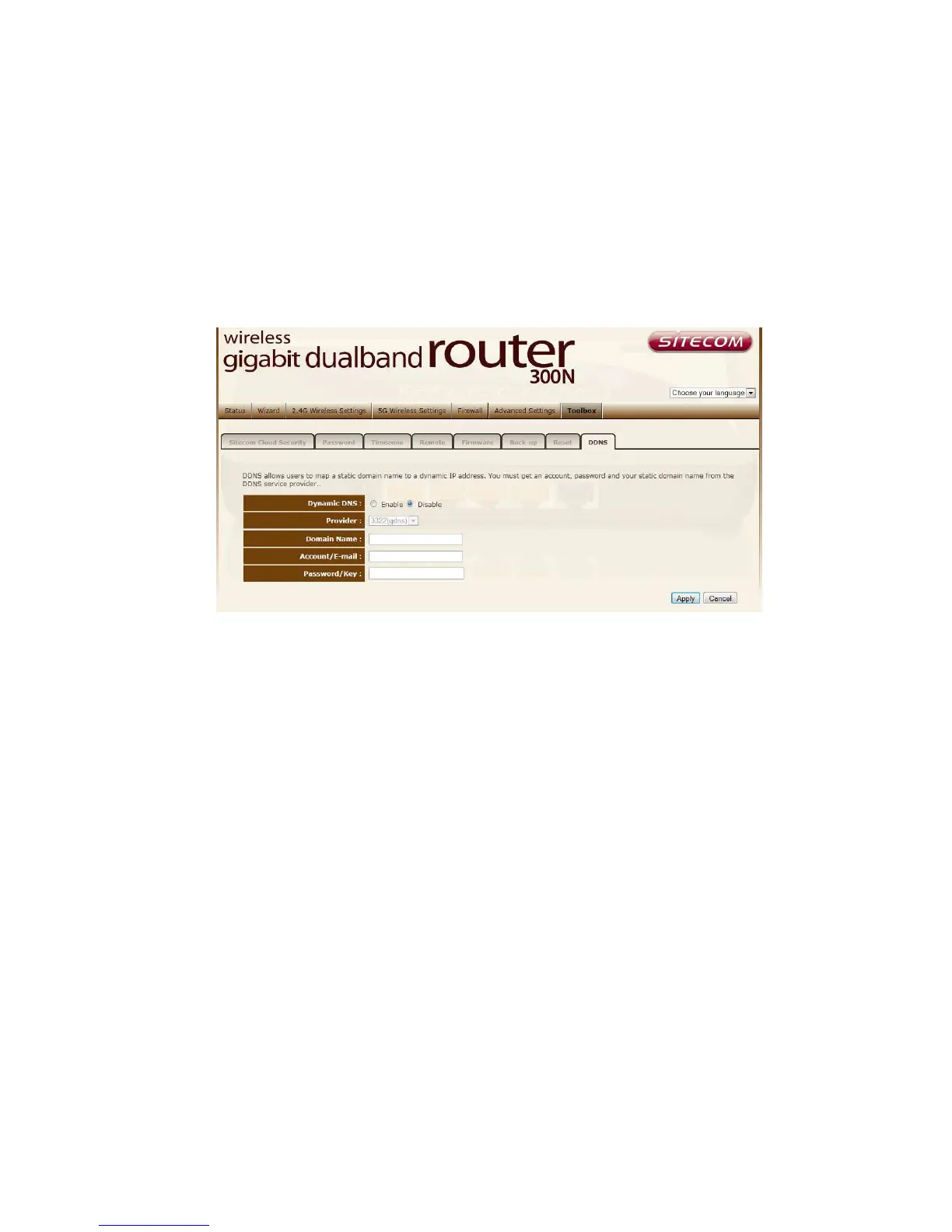 Enable/Disable Enable or disable the DDNS function of this router