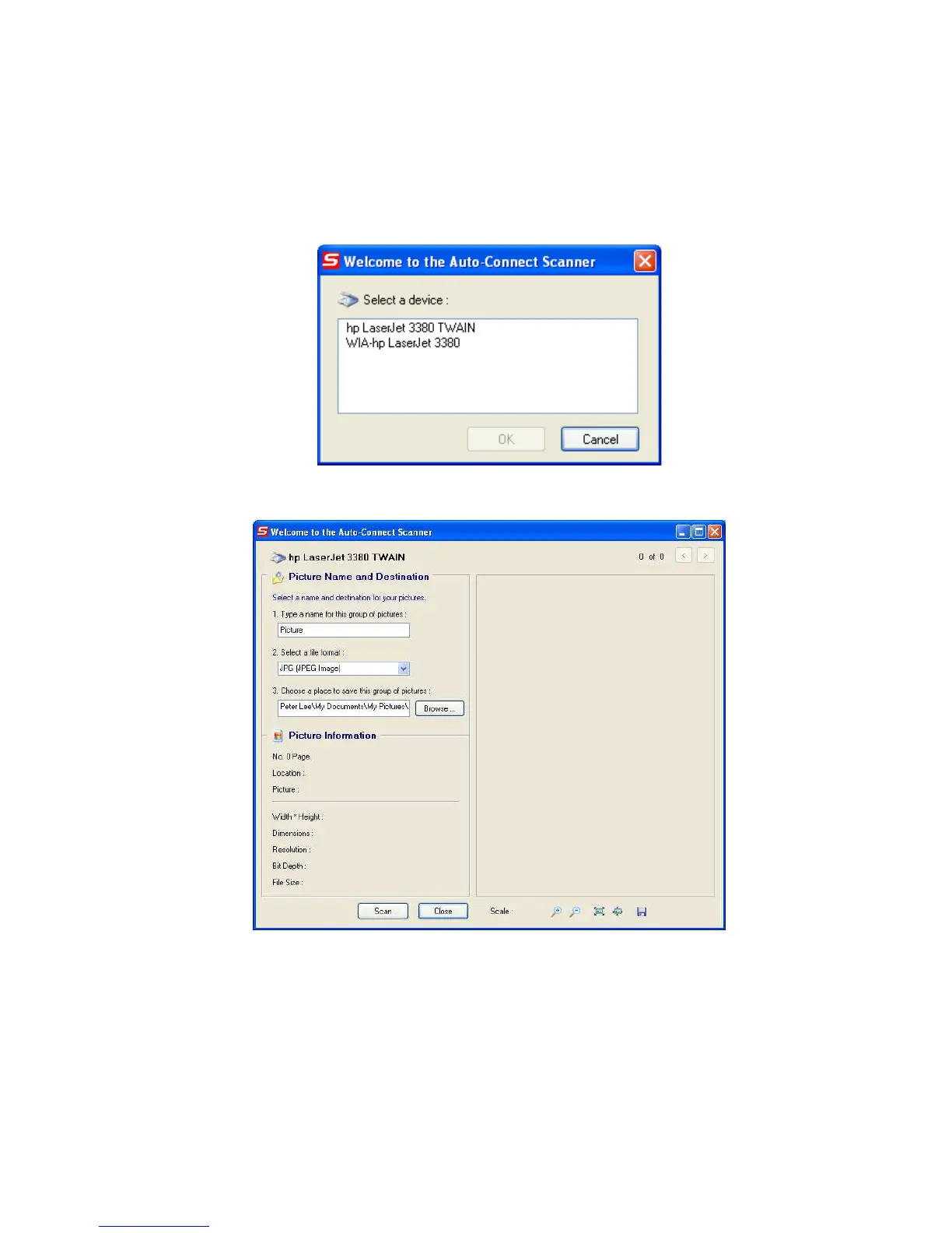 Choose one of TWAIN or WIA item. Click “OK”. The following window will