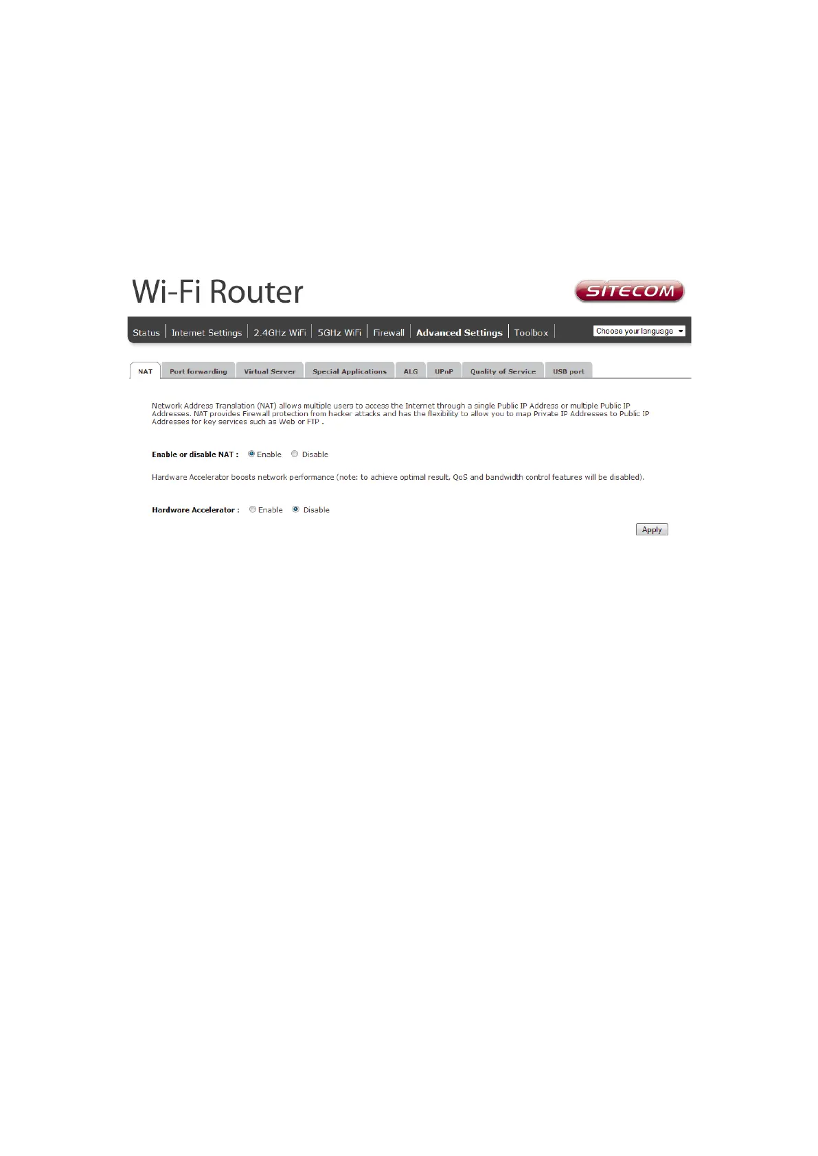 NAT: Select Disable to disable the NAT function.