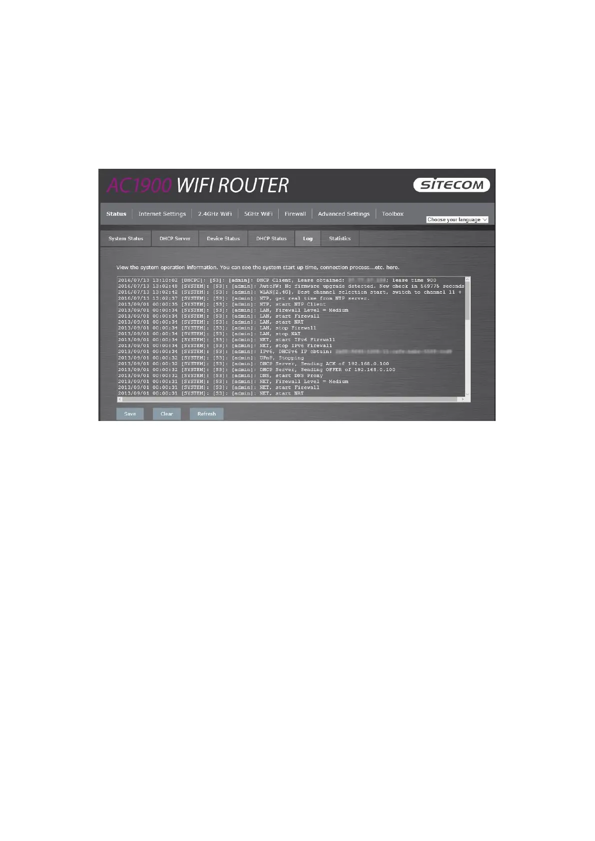 system log can be saved <Save> to a local file for further processing or the system log can be