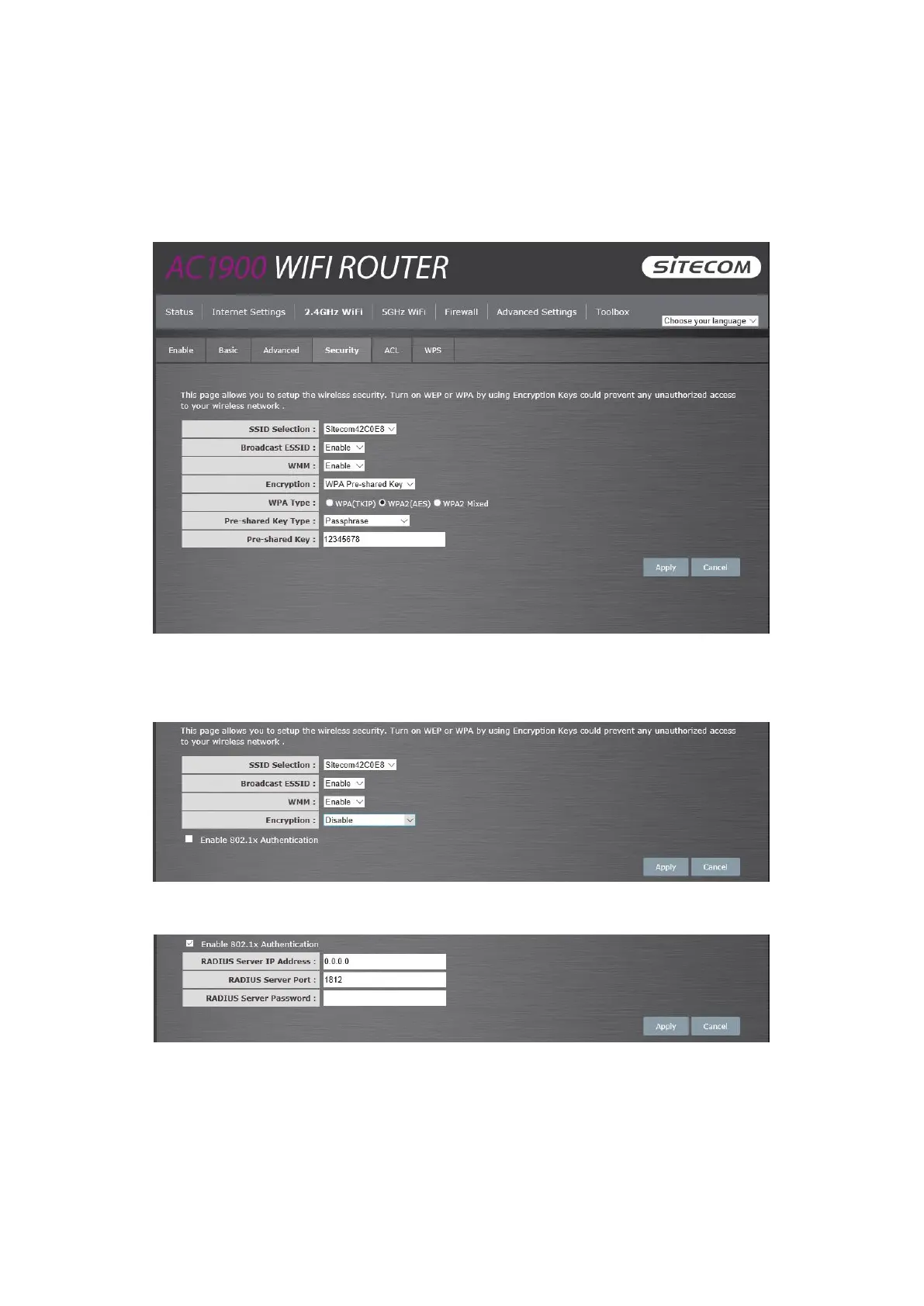 server. This mode only authenticates users by IEEE 802.1x, but it does not encrypt the data