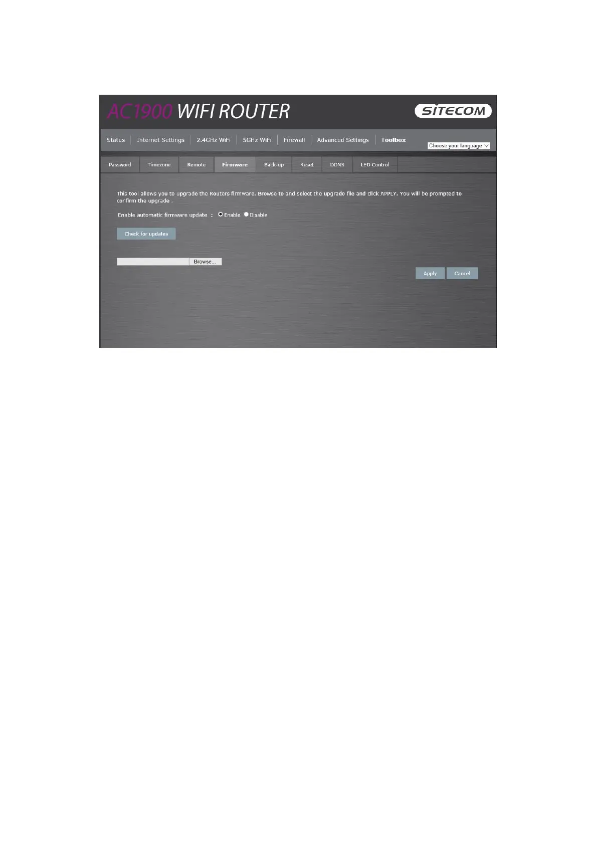 Once you’ve selected the new firmware file, click Apply at the bottom of the screen to start the