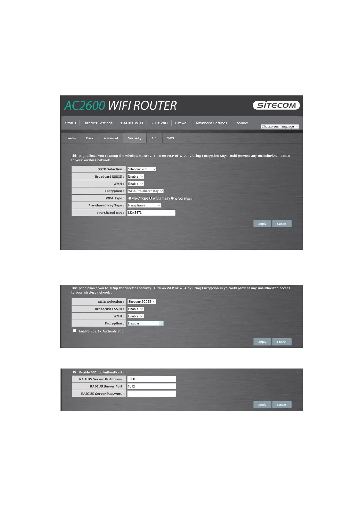 This router provides complete wireless LAN security functions, included are WEP, IEEE 802.11x,
