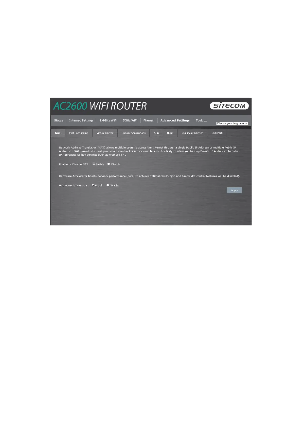 NAT: Select Disable to disable the NAT function.