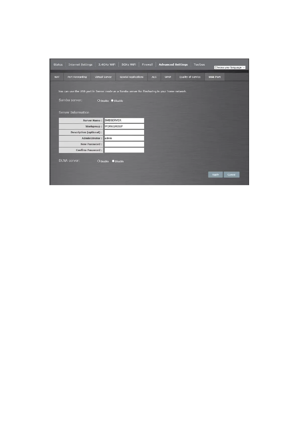 Administrator: Enter a desired username for access to the share.