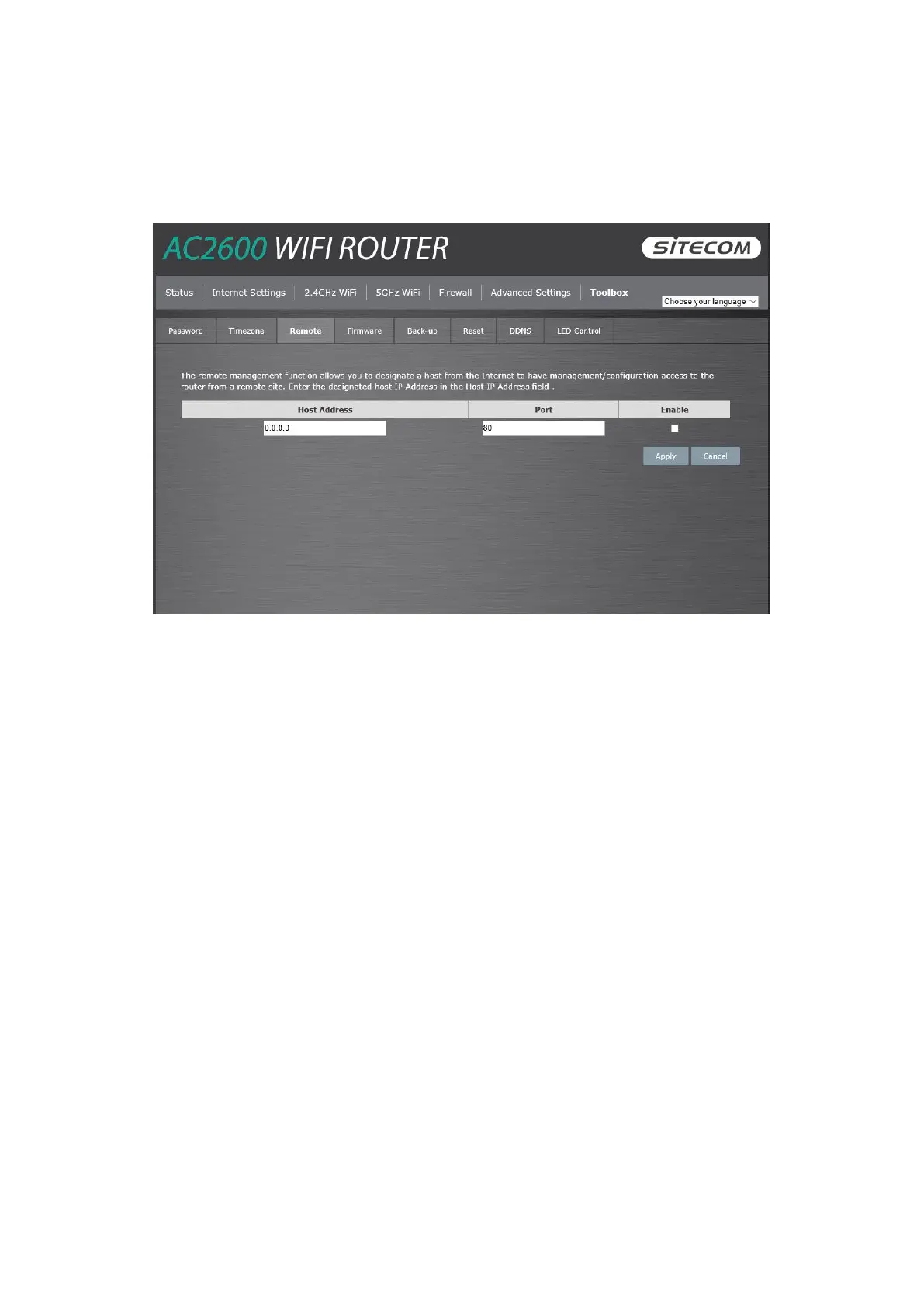 The remote management function allows you to designate a host in the Internet the ability to