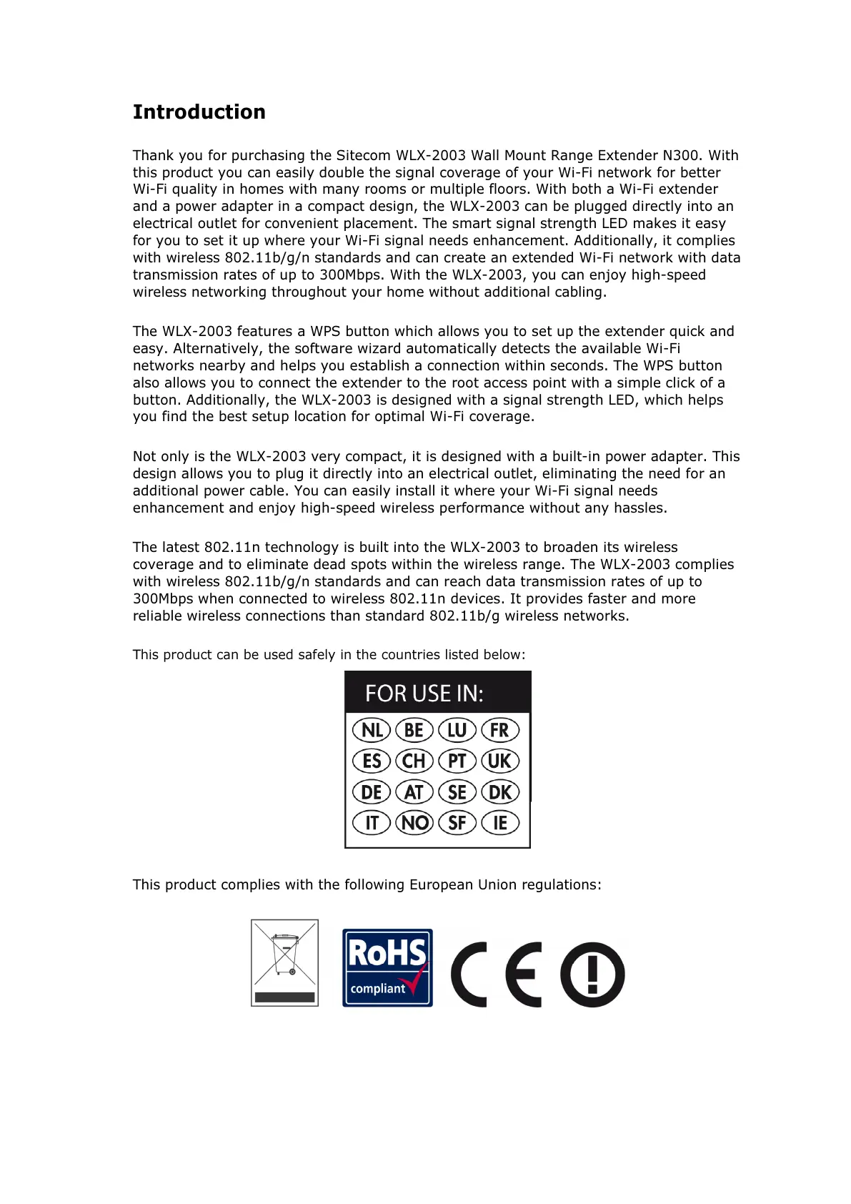 Thank you for purchasing the Sitecom WLX-2003 Wall Mount Range Extender N300. With