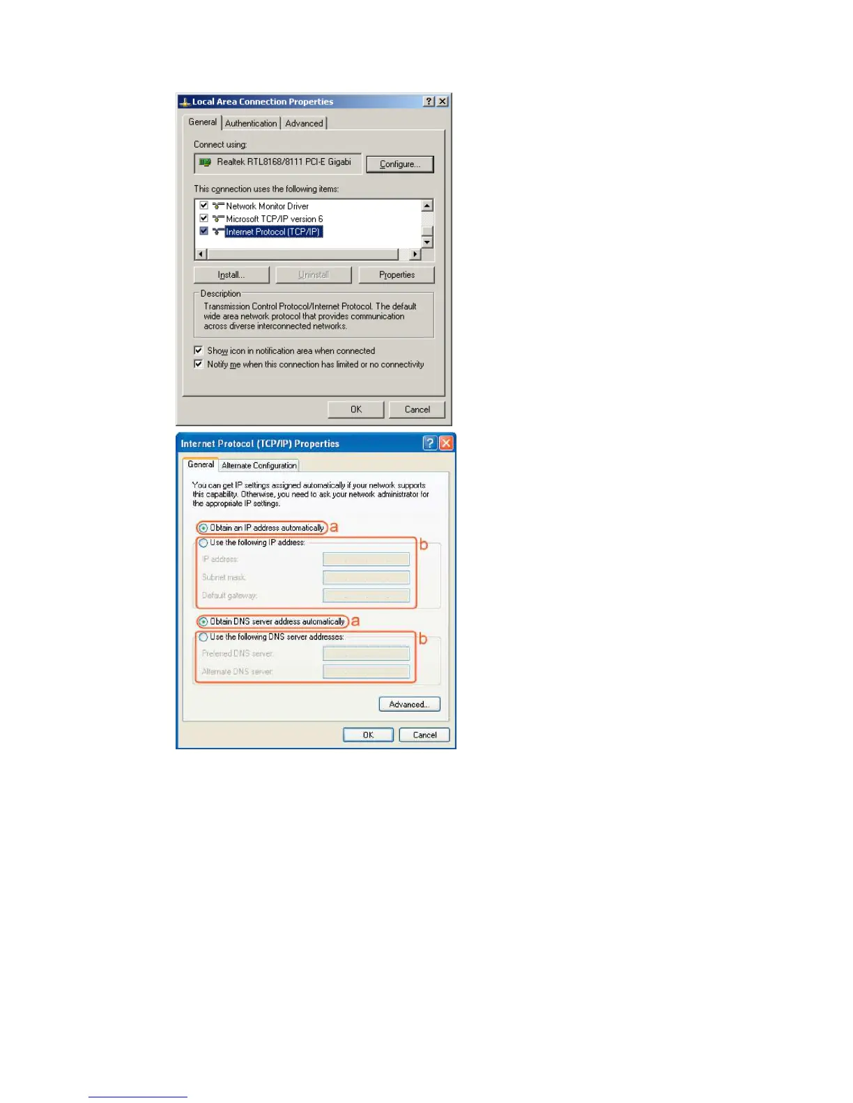 The device supports the [DHCP] function, please select both [Obtain an IP address