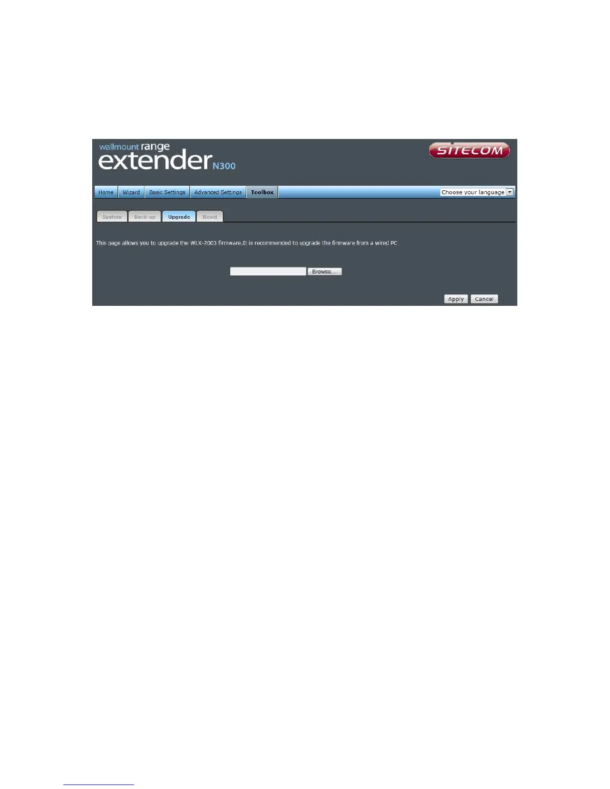 NOTE: Never interrupt the upgrade procedure by closing the web browser or
