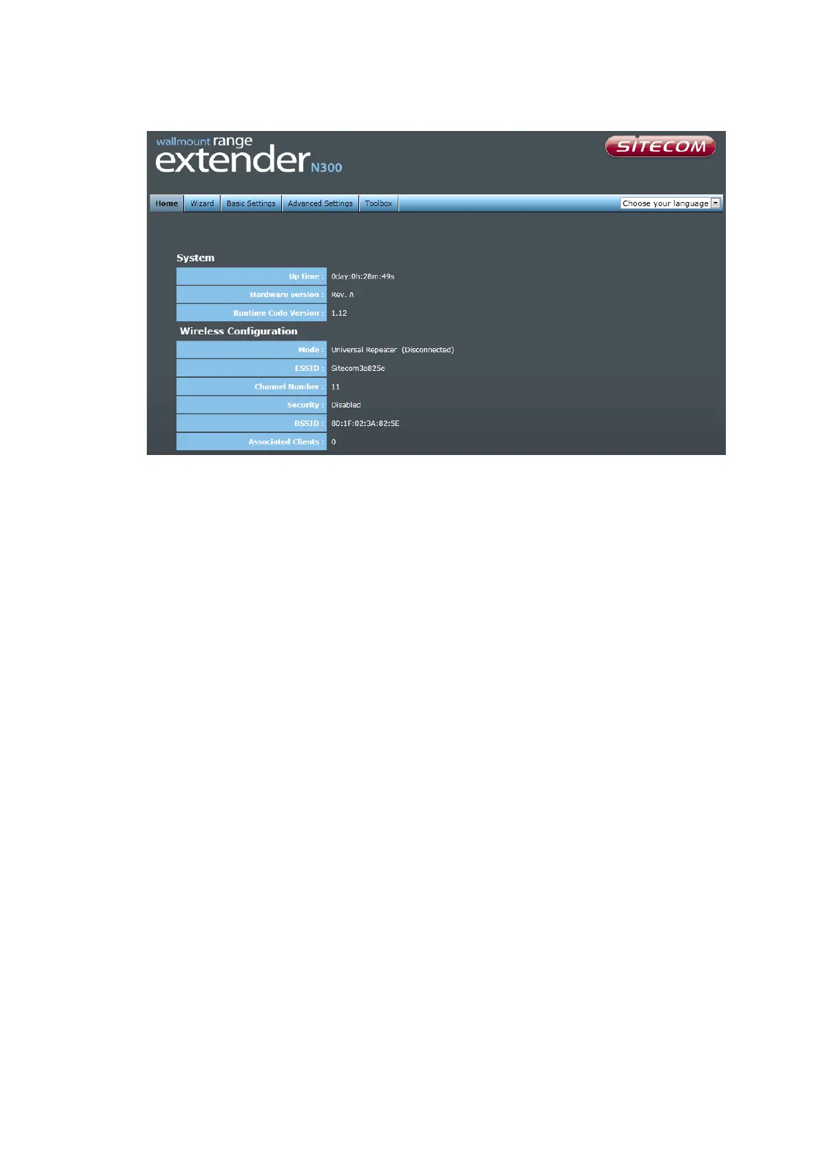 the UP time, hardware information, serial number as well as firmware version