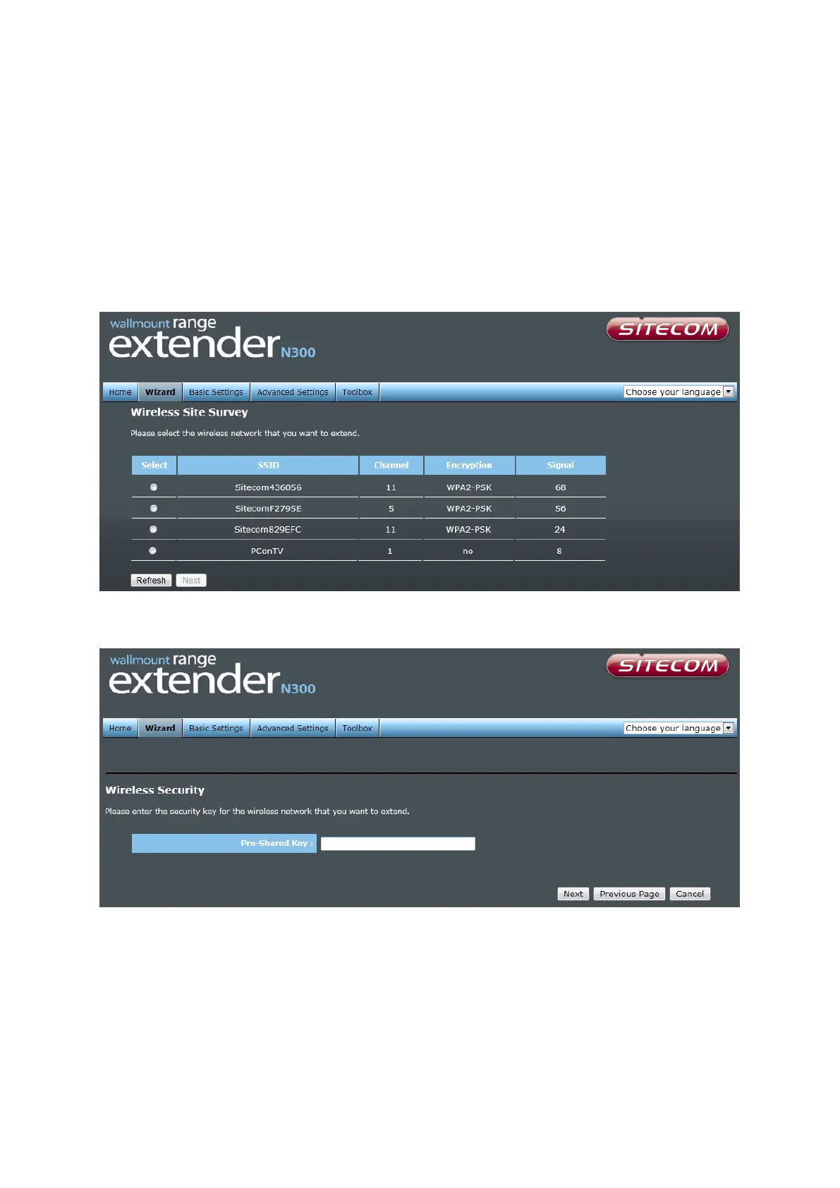 On the first page you can select the network that the Range Extender needs to connect