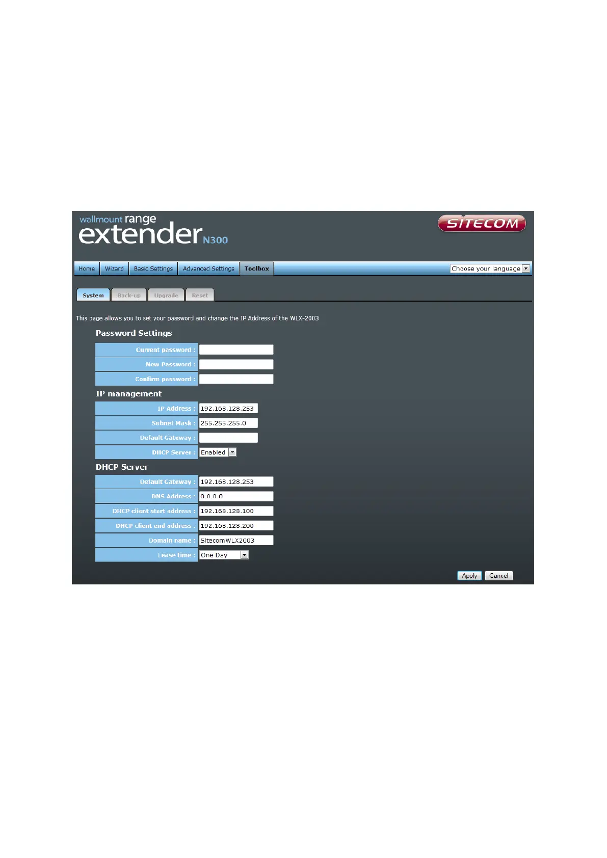 and DHCP server function. Please go to Toolbox, and open the ‘System’ tab, to access