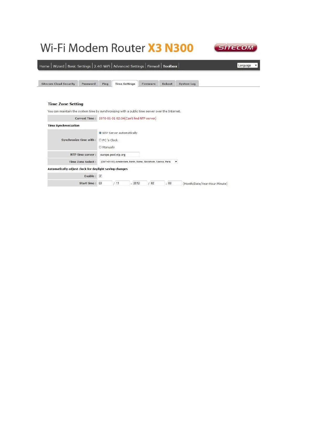 Current Time: The current time of the specified time zone. You can set the current time