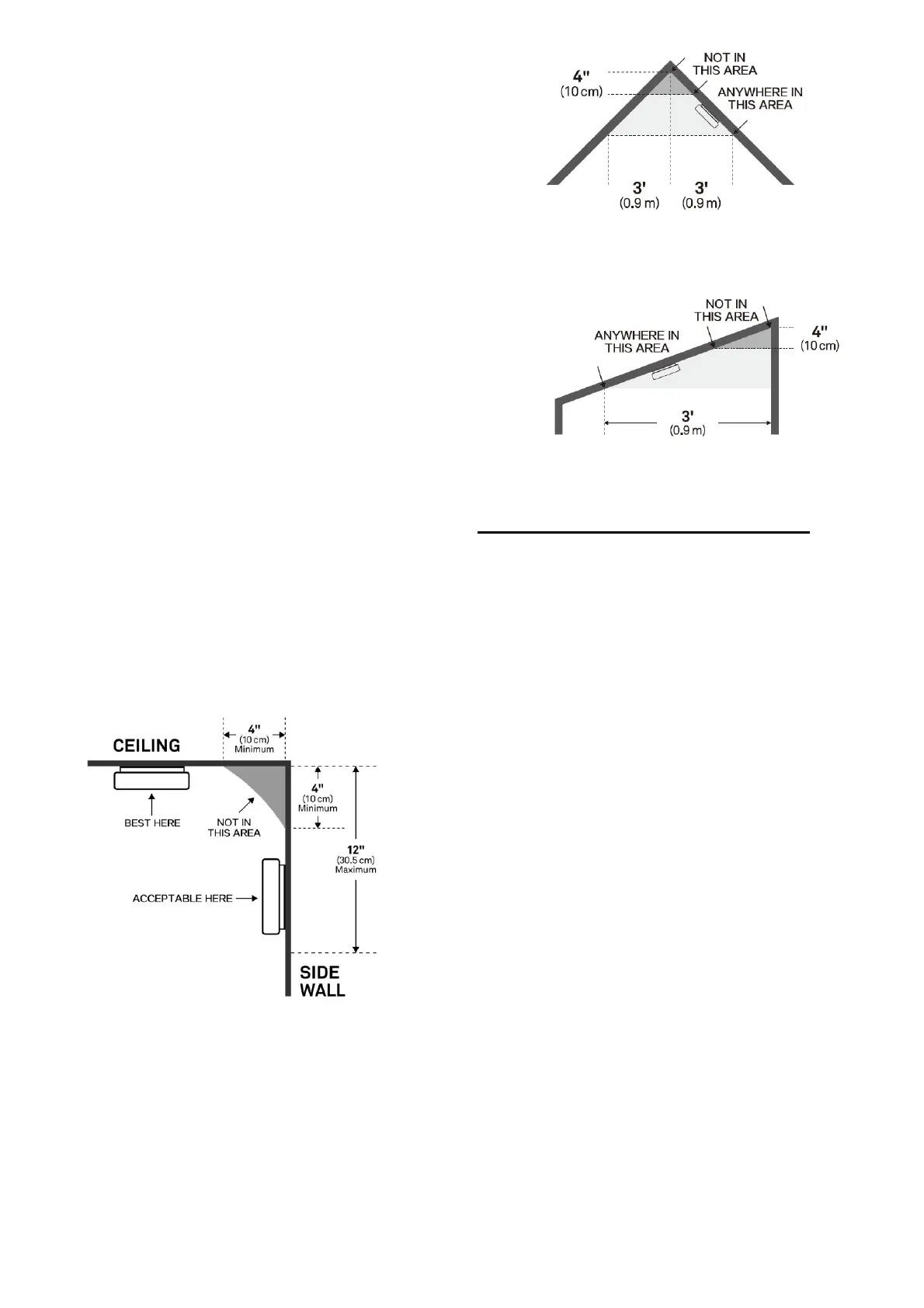 top edge of the alarm at a minimum of 4" (10cm) and a
