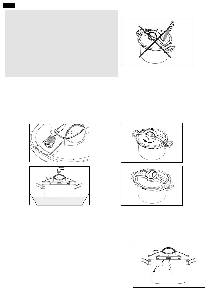 • Pode também proceder à despressurização da panela de pressão colocando-a debaixo de um jato de água fria ou colocando-a num