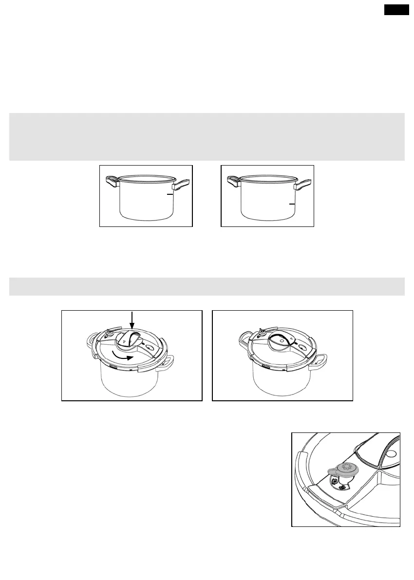 • Introduire les aliments avec la quantité d’eau nécessaire à la cuisson et fermer l’autocuiseur.
