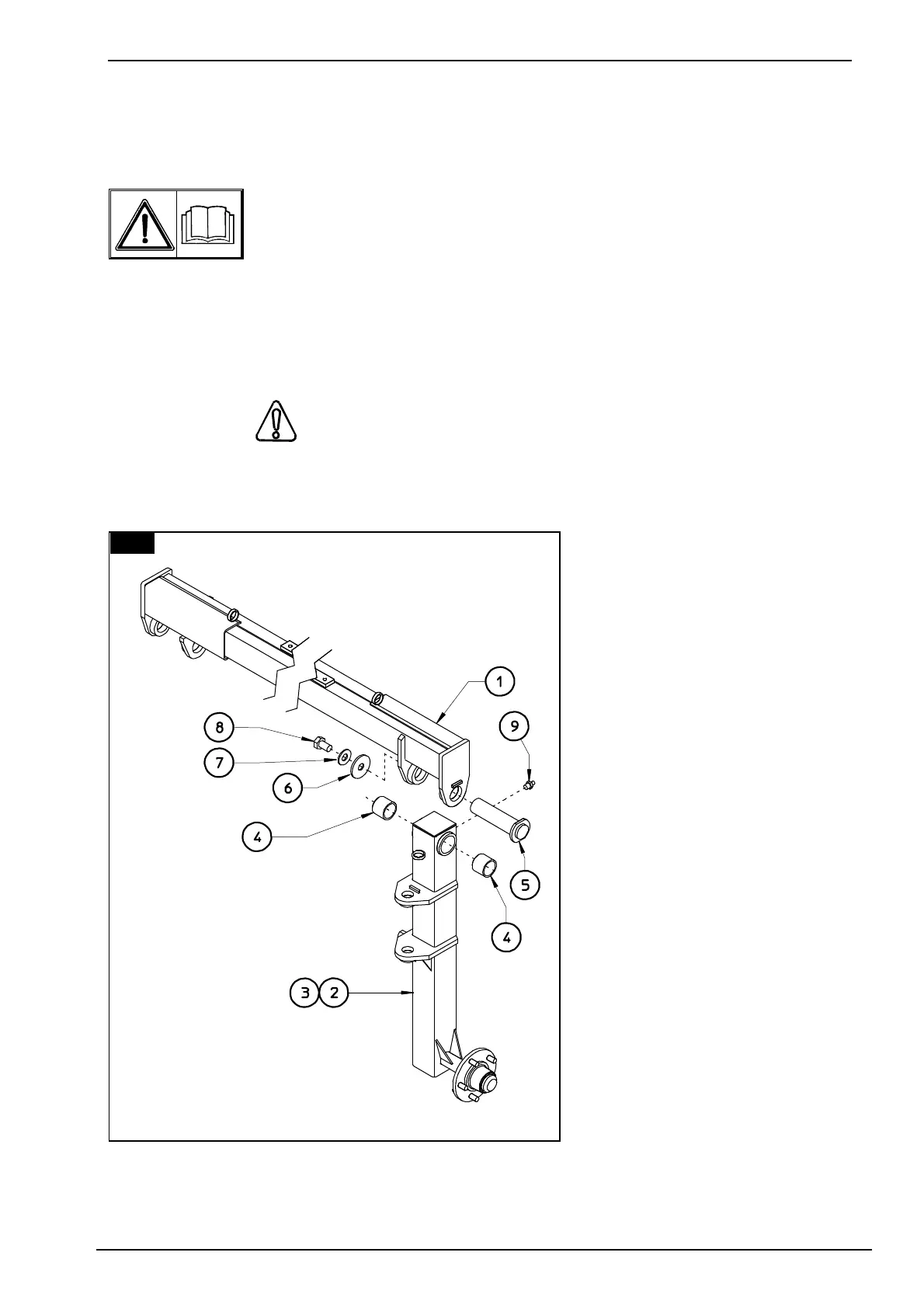Fit bushings 4 on proper seats of uprights 2 & 3. Attach the wheel supports 2 & 3 (LH - RH) to